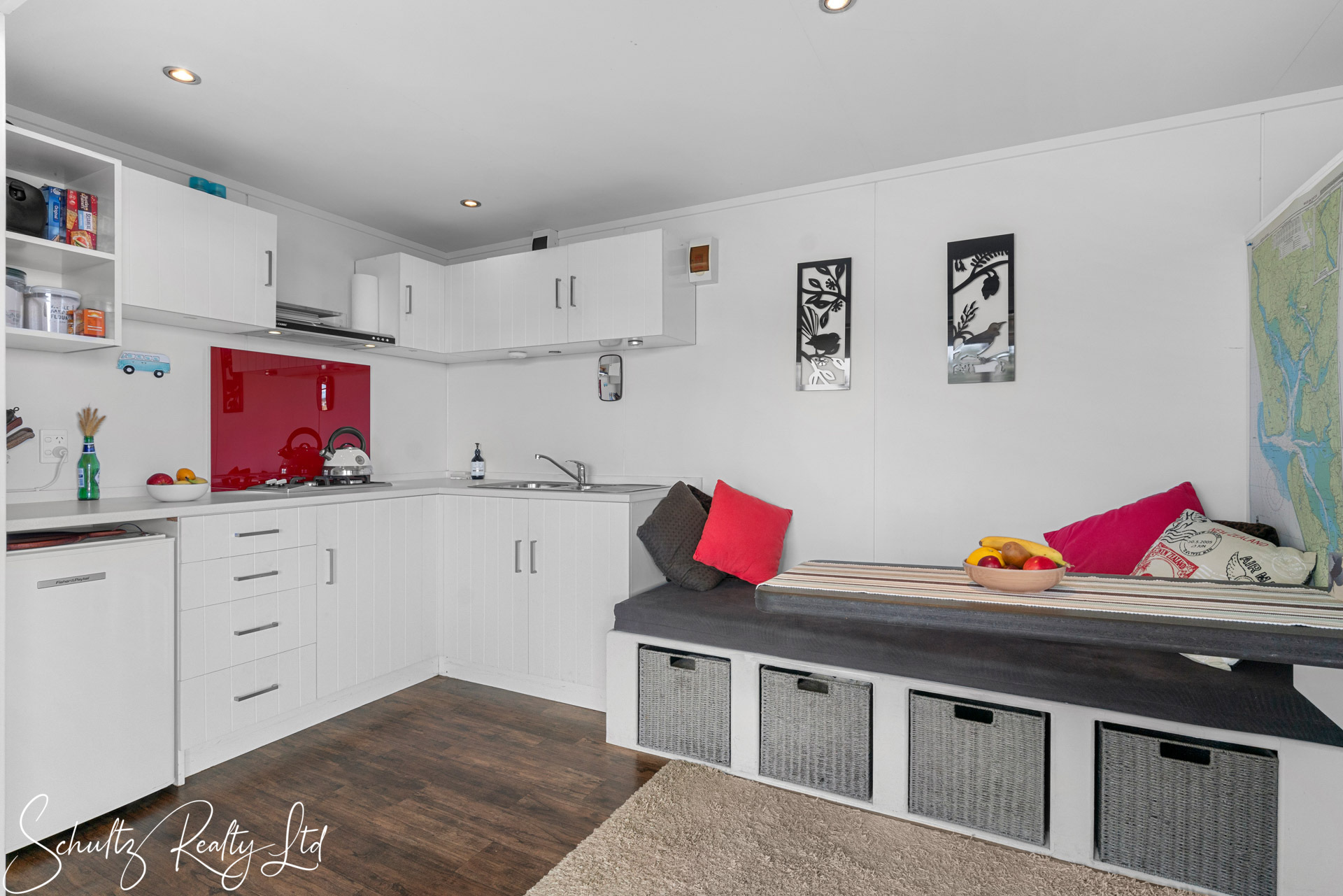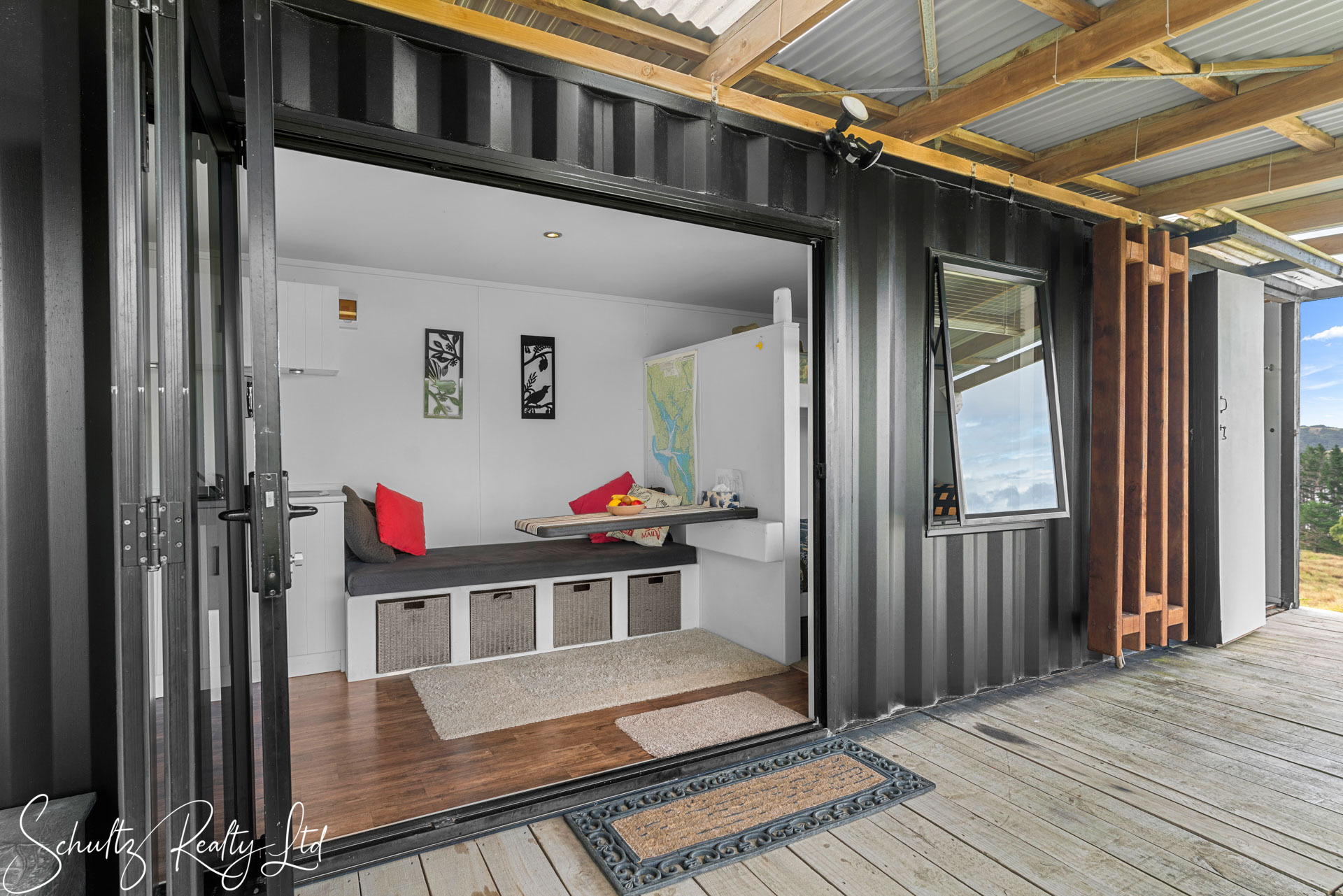 The first container, does not require consent, sets the tone with its expansive living area, featuring double aluminum doors that effortlessly connect to the spacious deck. The open-plan design seamlessly leads to the second cabin (not consented) where you will find a kitchenette, with modern appliances such as a fridge, rangehood, and a convenient dining table. The bedroom, complete with a double bed and a single bunk above, provides convenience. With endless possibilities, choose to use as a holiday destination or making for the perfect stay whilst building a more permanent abode.