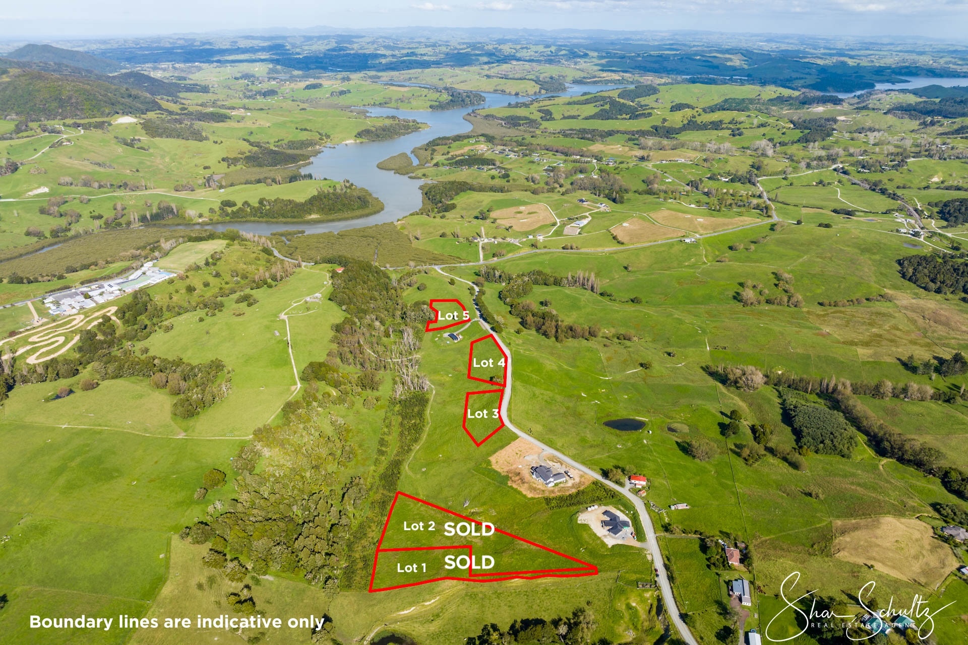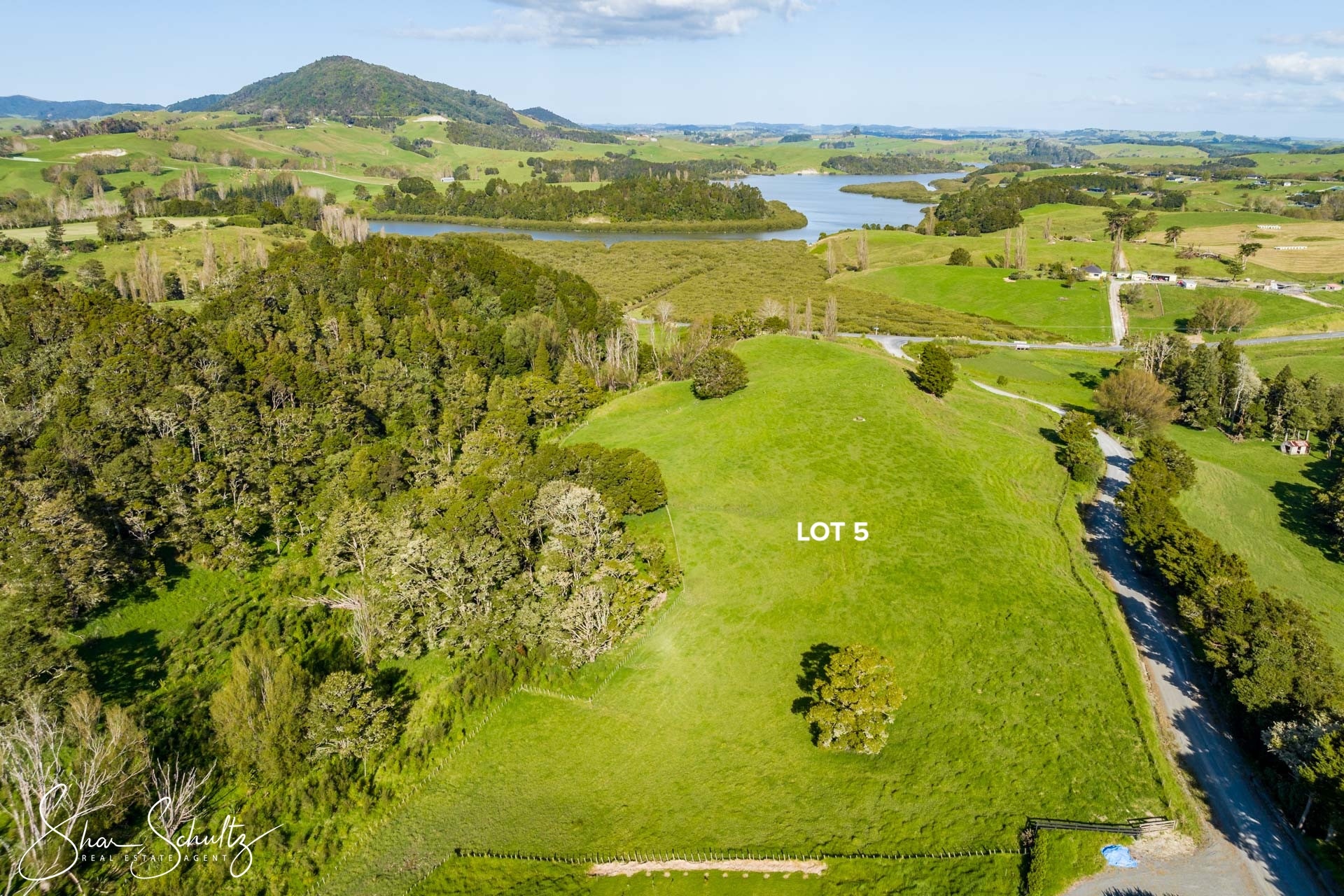 A larger landholding with a sloping contour and a pegged-out house site, Lot 4 captures open rural views with a small peep of the water. The building platform sits slightly down the hill, offering shelter and privacy while still enjoying the outlook. Ideal for buyers wanting space and a quieter, tucked-away feel.