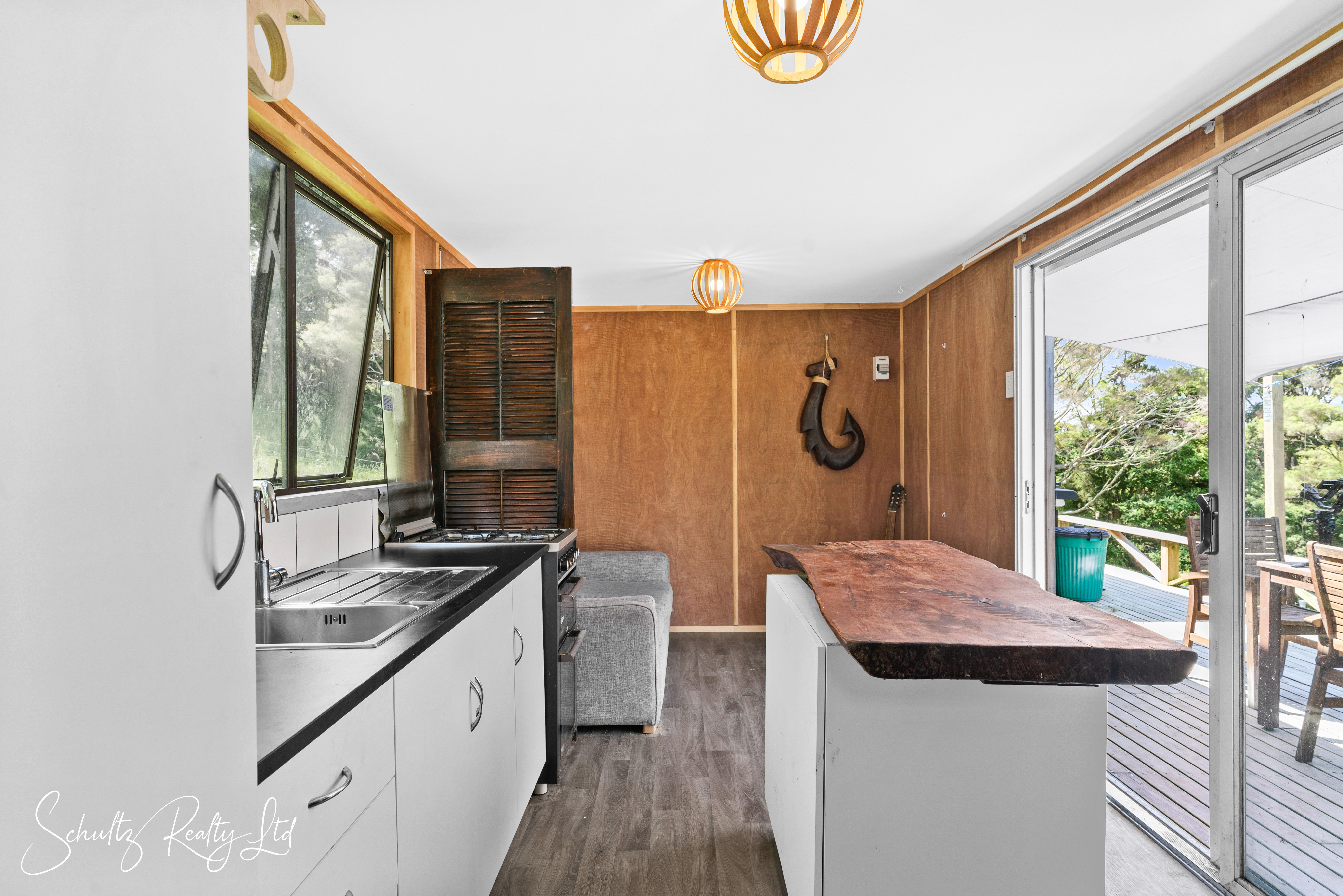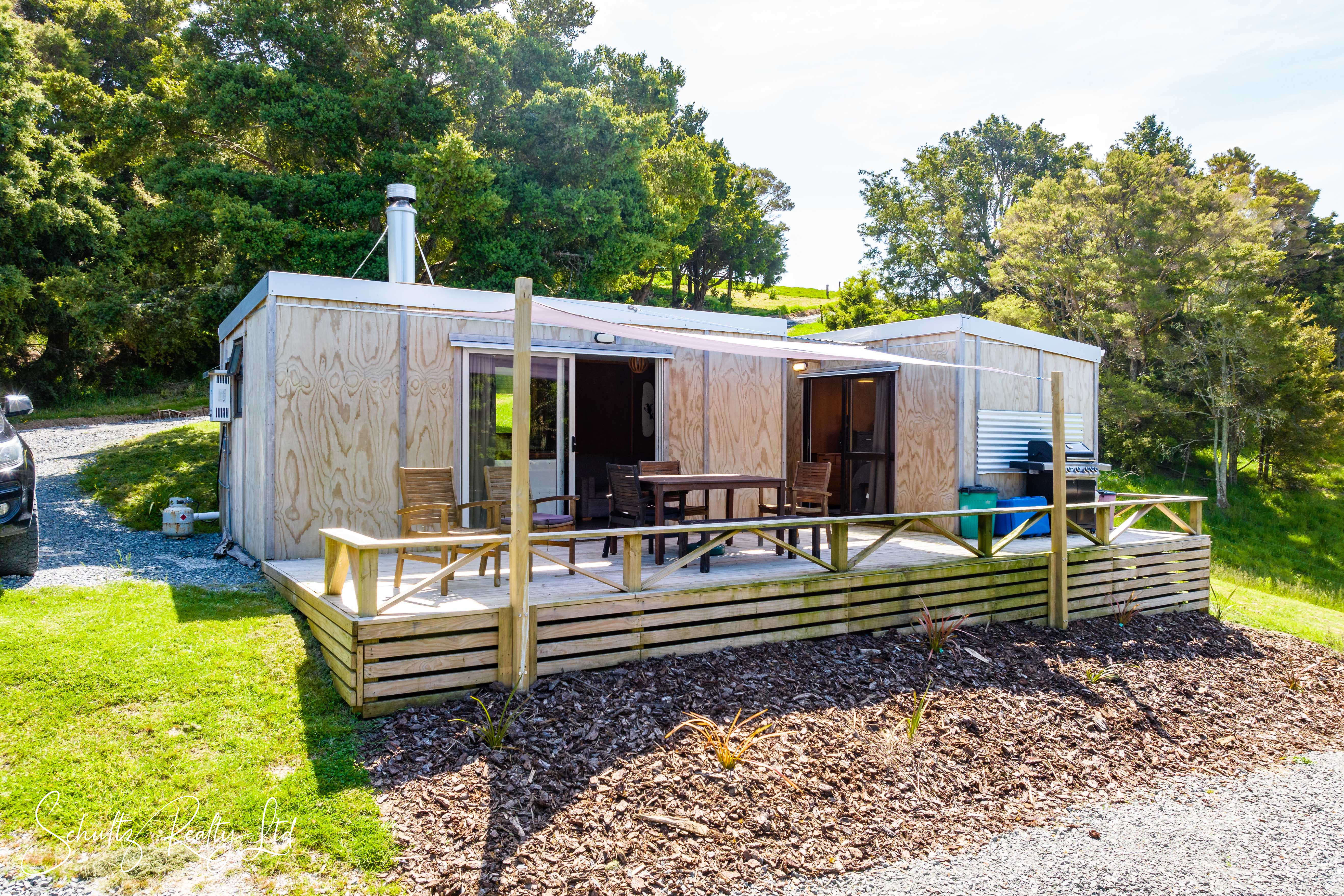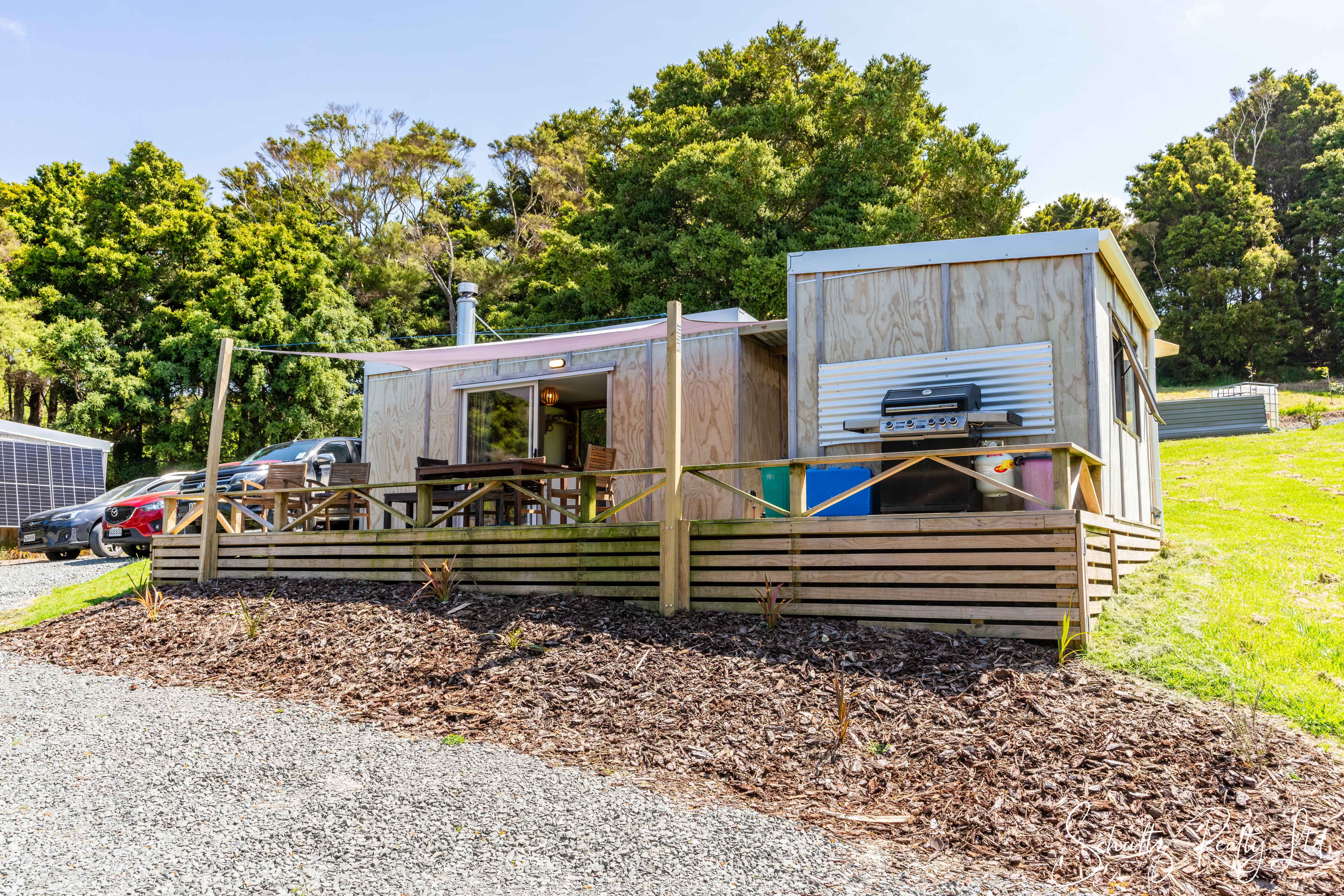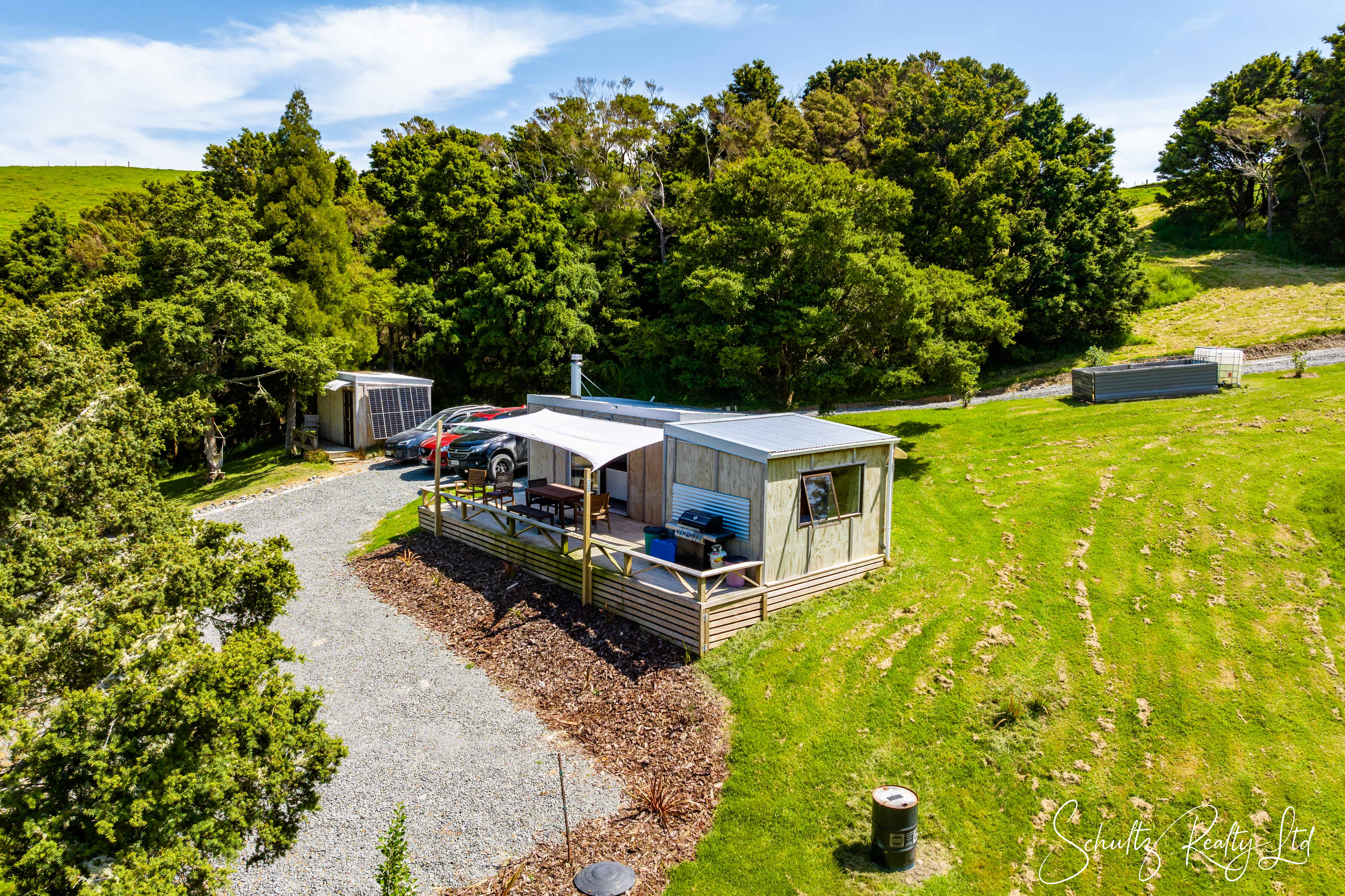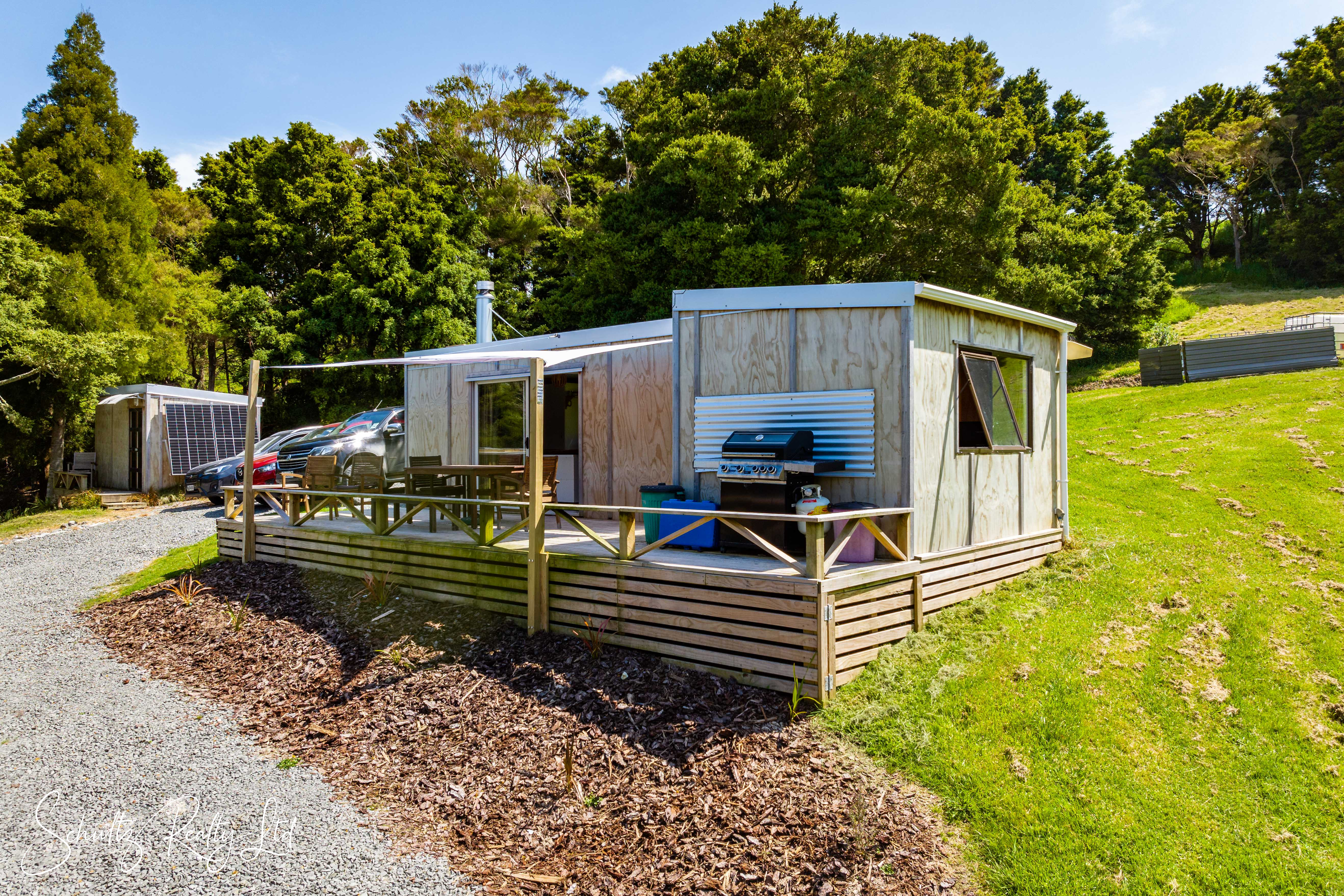 Experience the ultimate in off-grid living with three cozy cabins thoughtfully nestled within the natural landscape. The main cabin, the heart of this tranquil retreat, combines a kitchen, dining area, and bathroom, all warmed by a wood burner for those cooler evenings. A spacious deck links to the second cabin, a peaceful bedroom retreat, while the third cabin offers additional sleeping quarters for guests or family members. Each cabin is tucked away behind lush native bush, providing a sense of privacy and seclusion.
