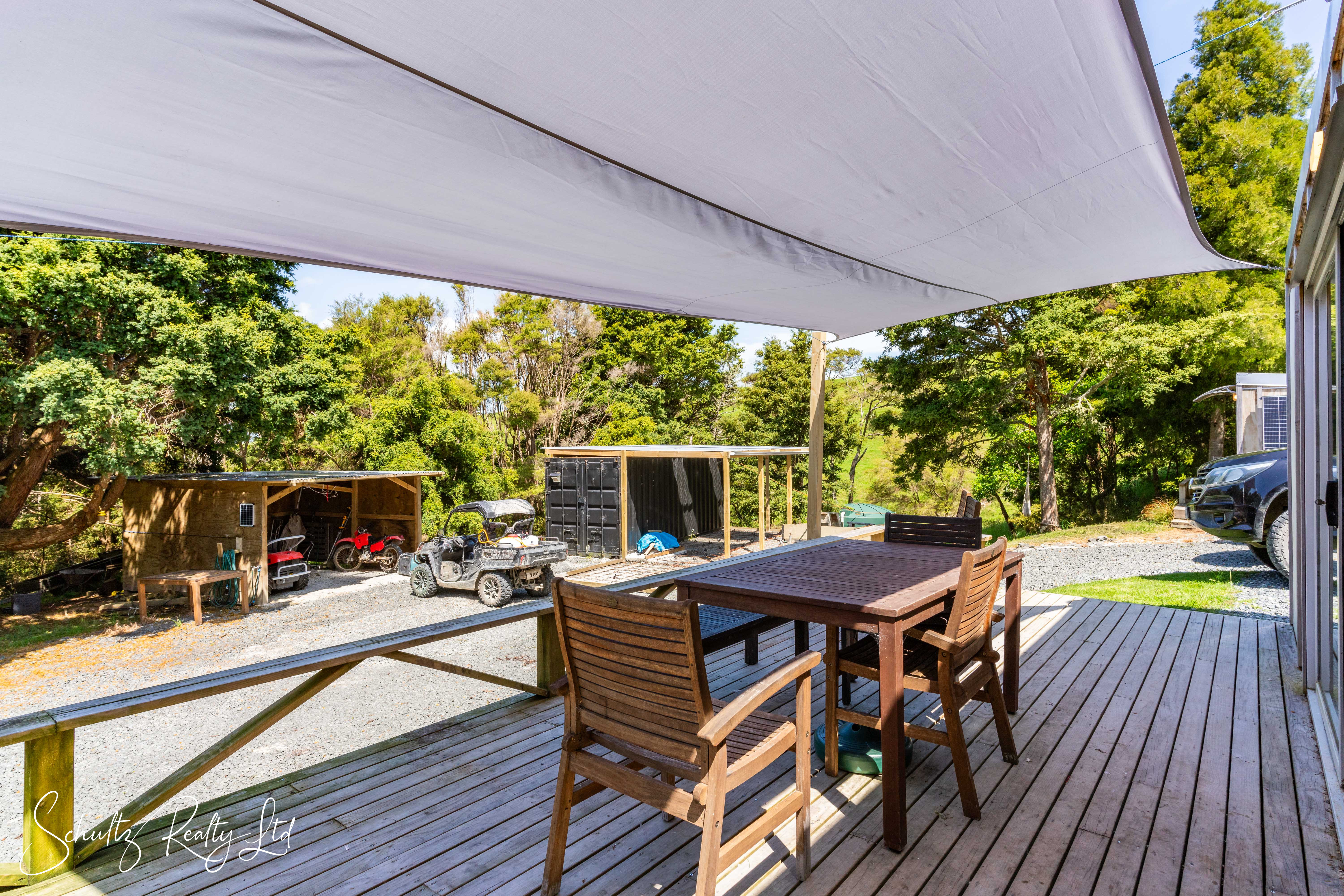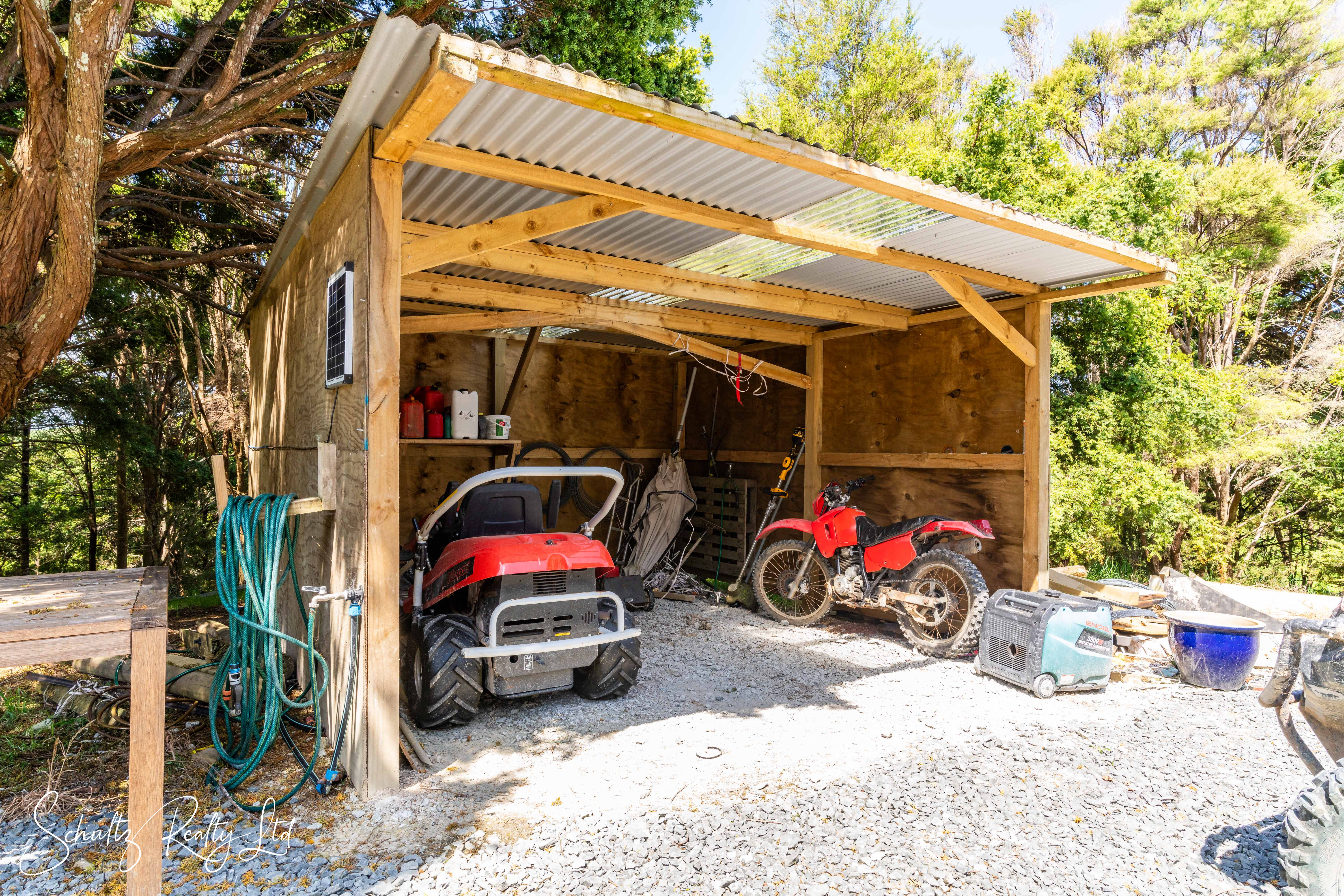 Additional features include a two-bay shed offering ample storage, and a container shed with an attached carport, ensuring all your storage needs are met.