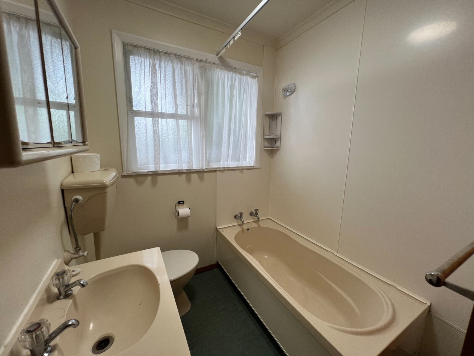 - Bathroom includes shower, toilet and vanity