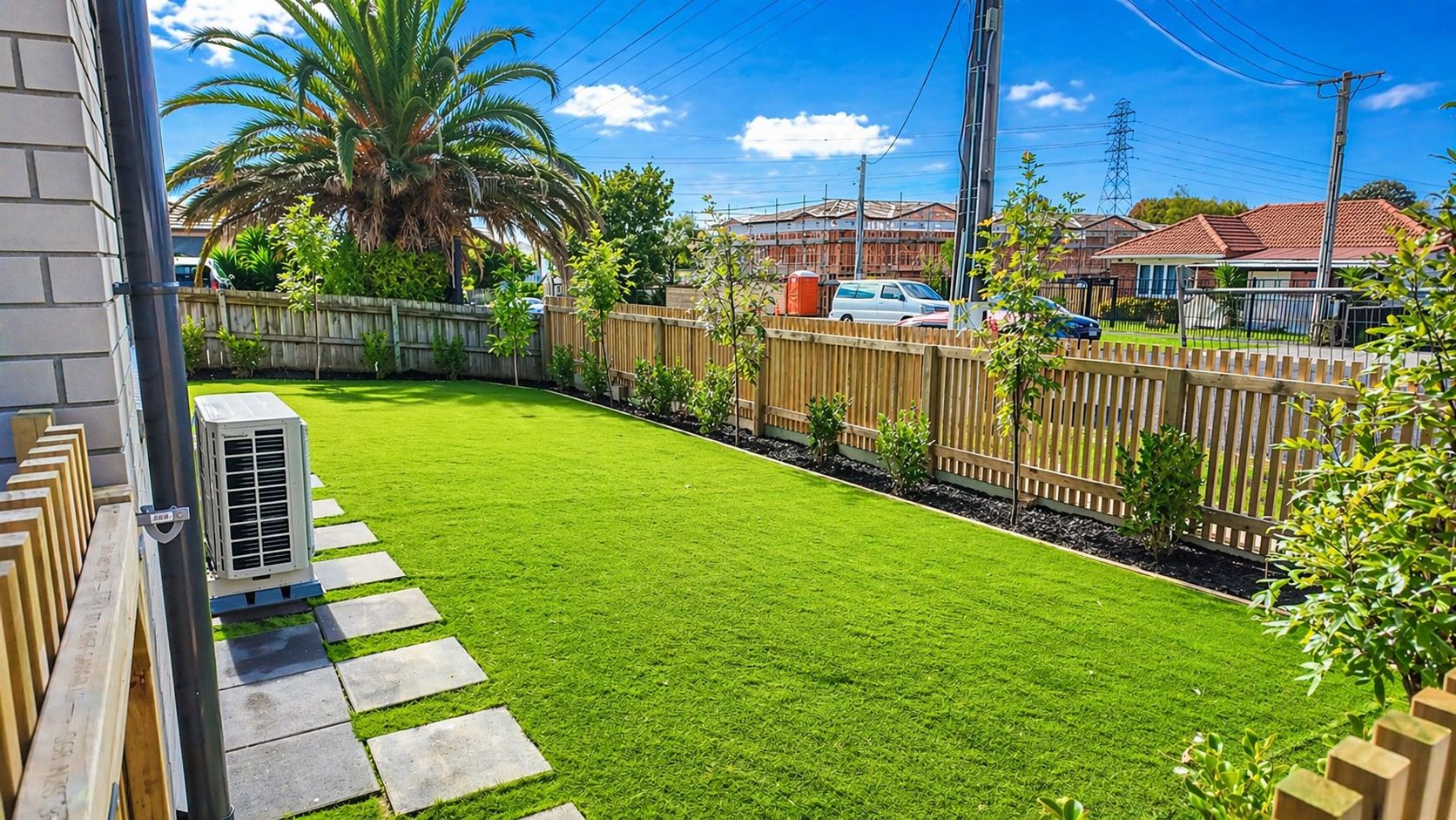 Enjoy the outdoors in your private backyard, perfect for relaxing or hosting gatherings. The property also boasts a lovely garden with grass and plants, providing a serene environment to unwind.