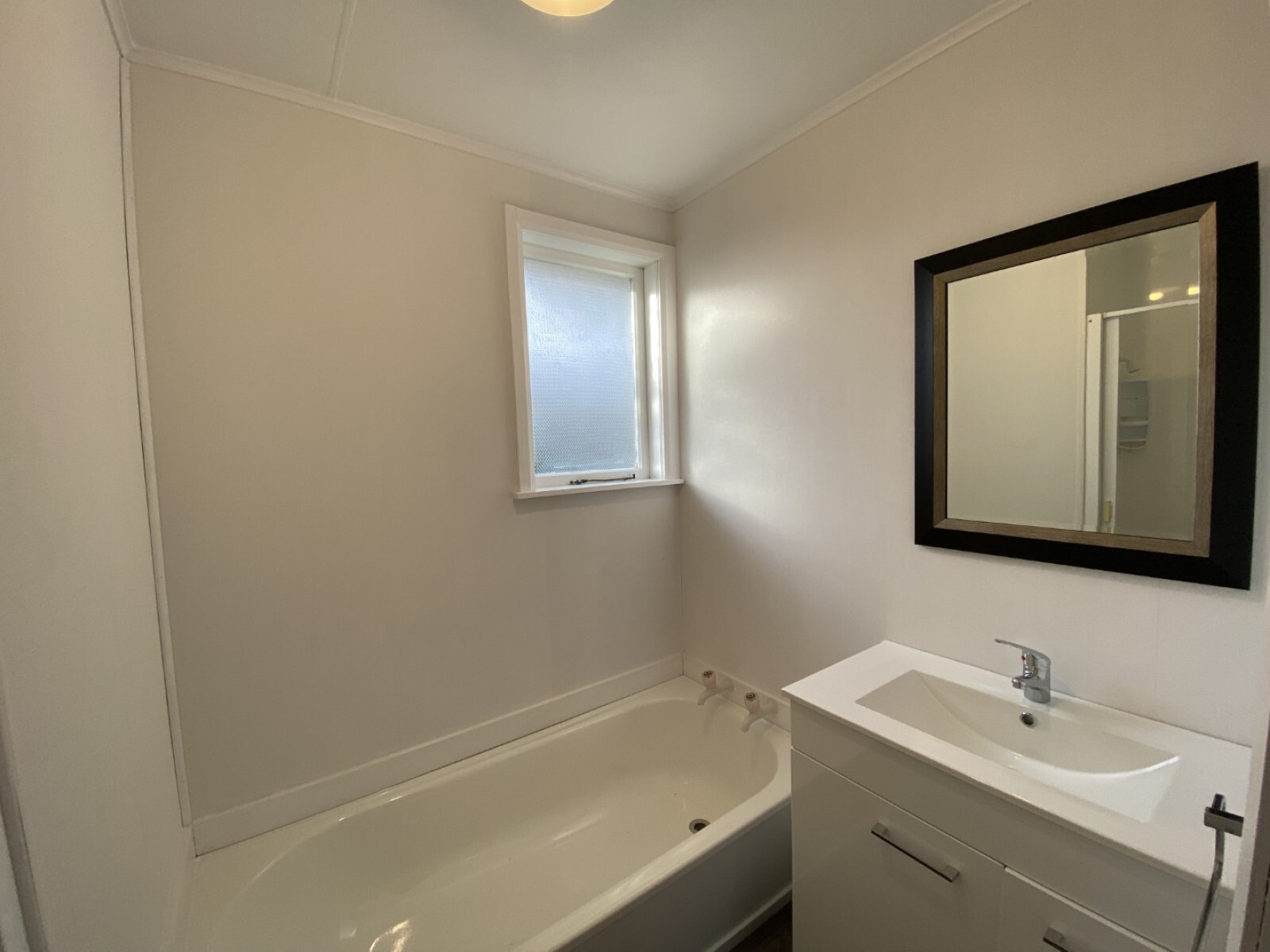 - Bathroom includes shower, bath and vanity