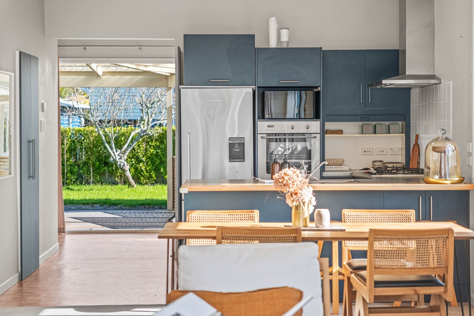 The heart of the home is the open-plan kitchen, dining, and living area, where you can enjoy stunning sea views. Step out onto the covered front deck for a peaceful morning cup of tea while gazing at the sea just across the road.