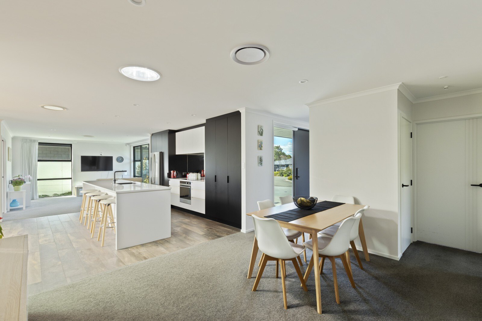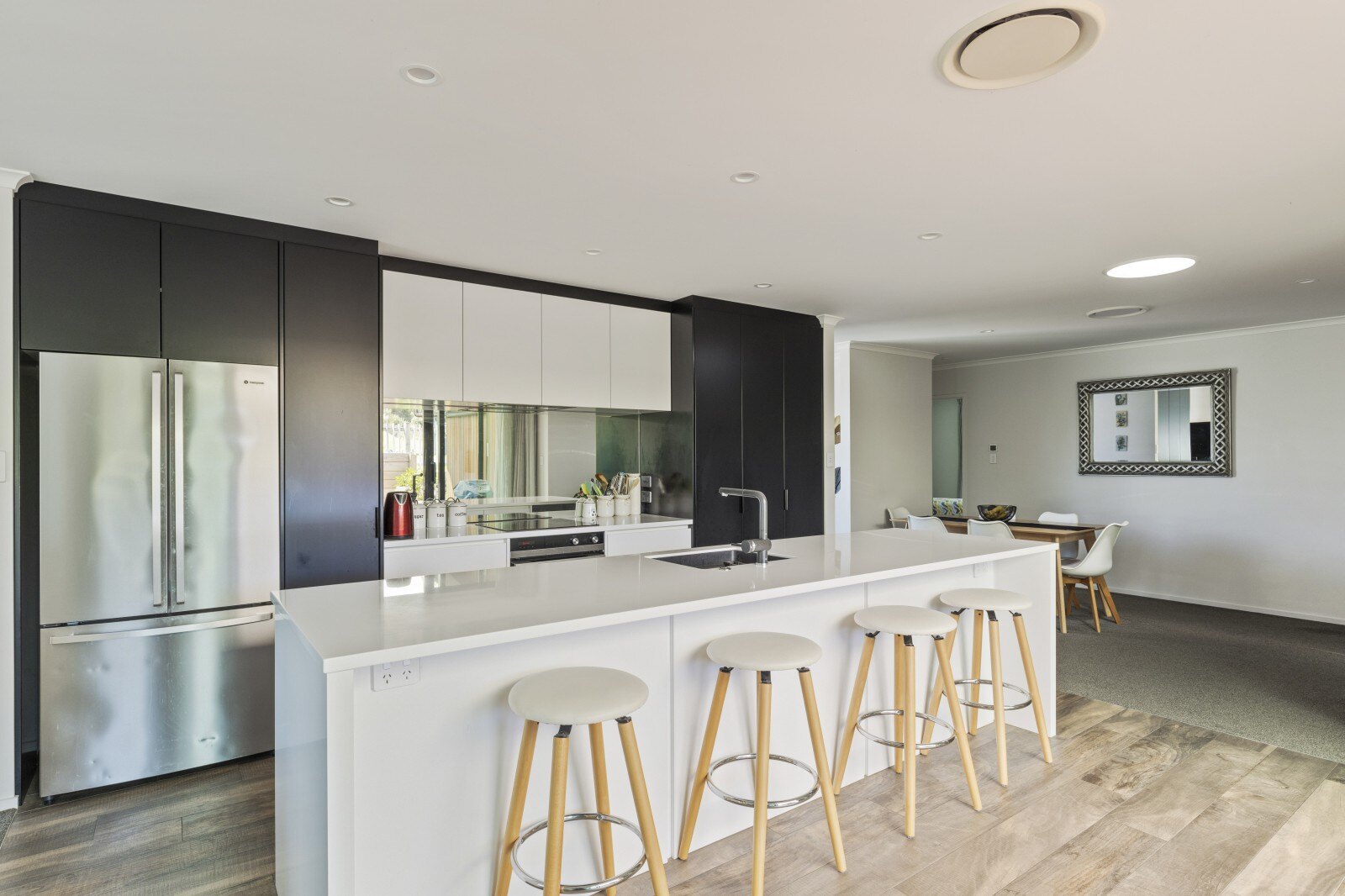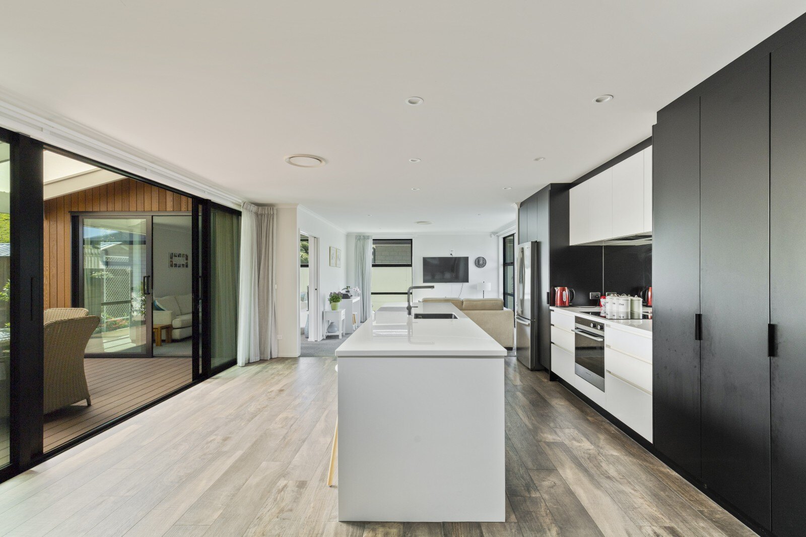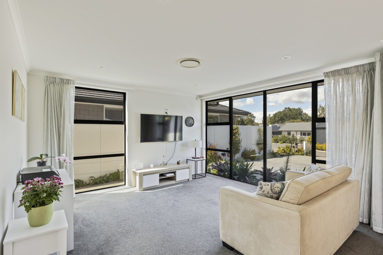 This home offers four spacious bedrooms with plenty of storage, and a stylish bathroom with large glass shower. The master bedroom includes a generous walk-in wardrobe and spacious ensuite. With floor to ceiling glass windows throughout, with an outlook into the immaculate garden surrounds, allowing the warm light to flow into the home.