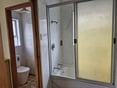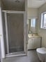 - Main bathroom includes a shower over bath, vanity and a separate toilet.
