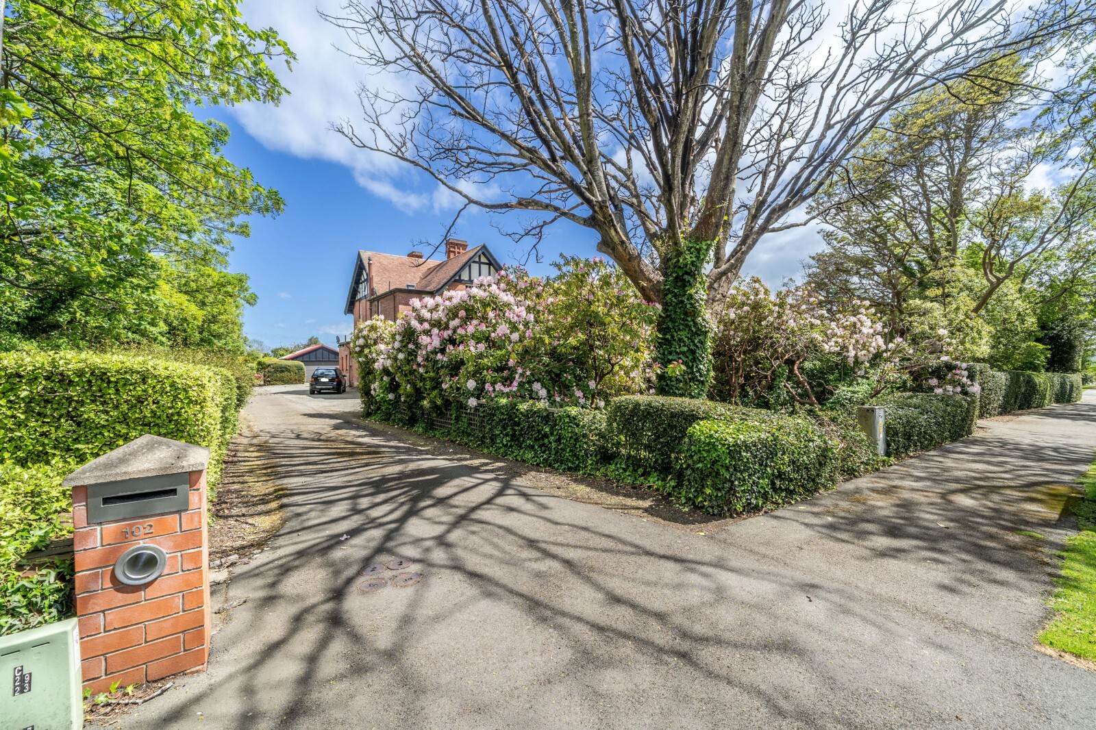 A standout feature of this property is its exceptional indoor-outdoor flow. The living spaces open seamlessly to a sweeping covered terrace, making it ideal for entertaining year-round. Set on just over half an acre of beautifully landscaped grounds, the outdoor setting is both private and picturesque, having previously hosted family celebrations and special occasions. The original gardener’s cottage adds character and charm, while a double garage and workshop sit discreetly to the rear.