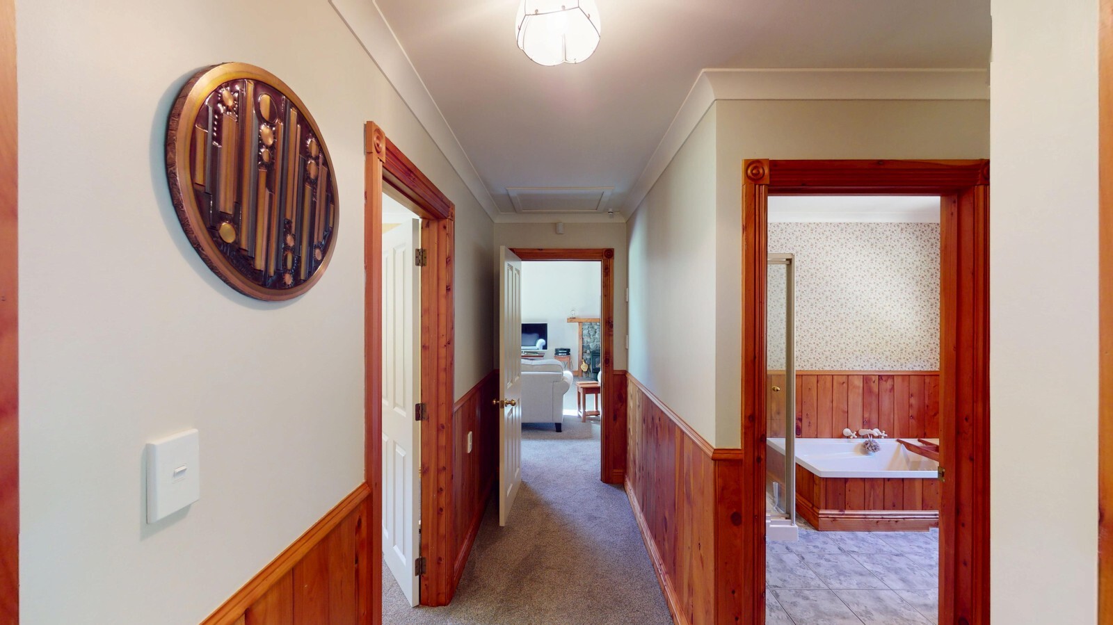 Tucked away behind mature trees and beautifully kept grounds, this exceptional five-bedroom home blends timeless craftsmanship with modern comfort in a peaceful, secluded setting just minutes from town.