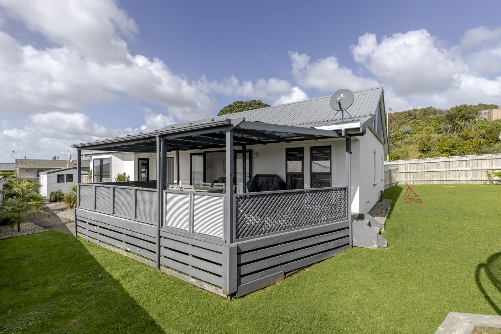 Set on a fully fenced section with a new front gate, the grounds are beautifully maintained and easy-care, with a wraparound pathway and flat lawn that’s perfect for children and pets.