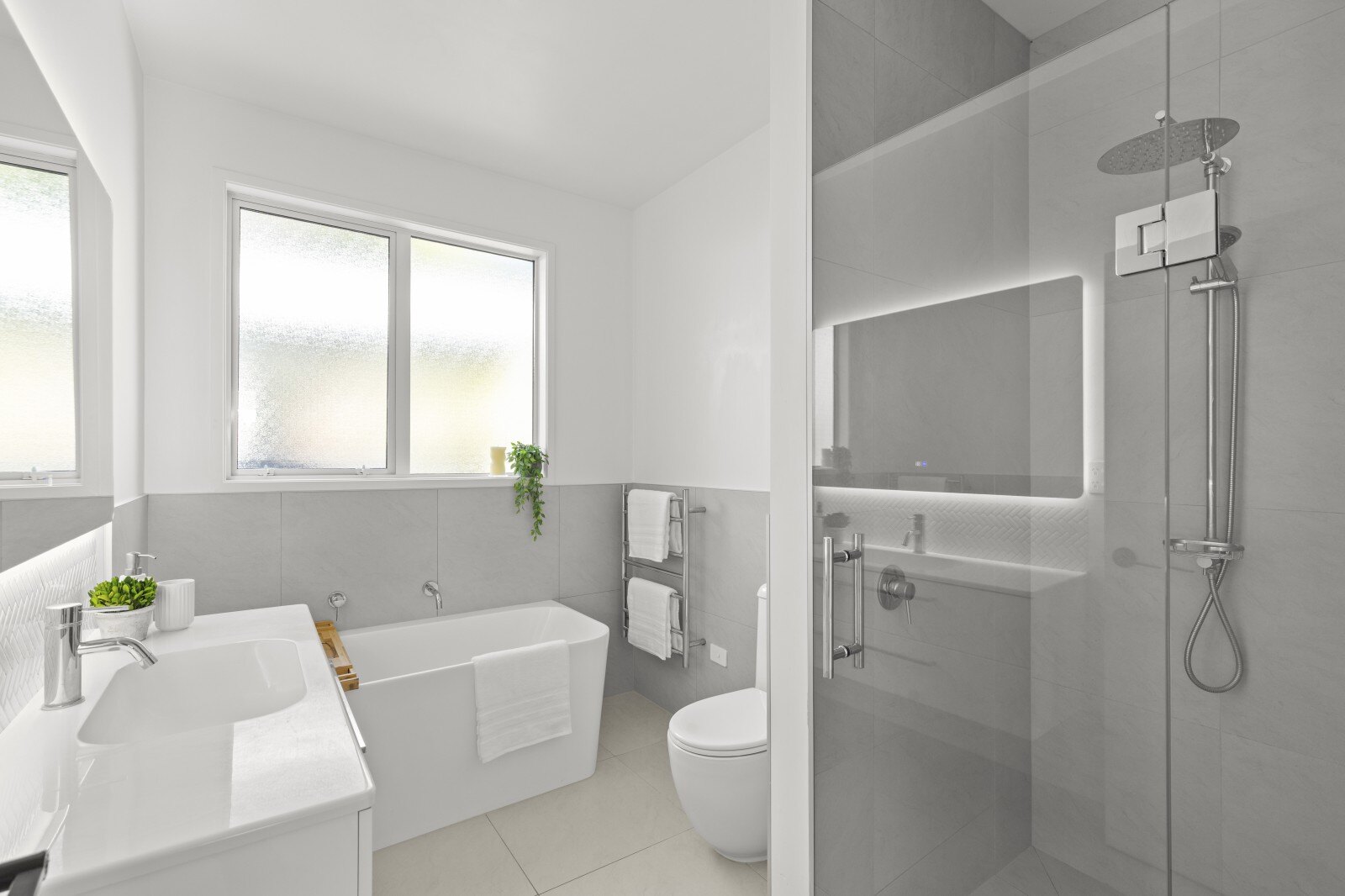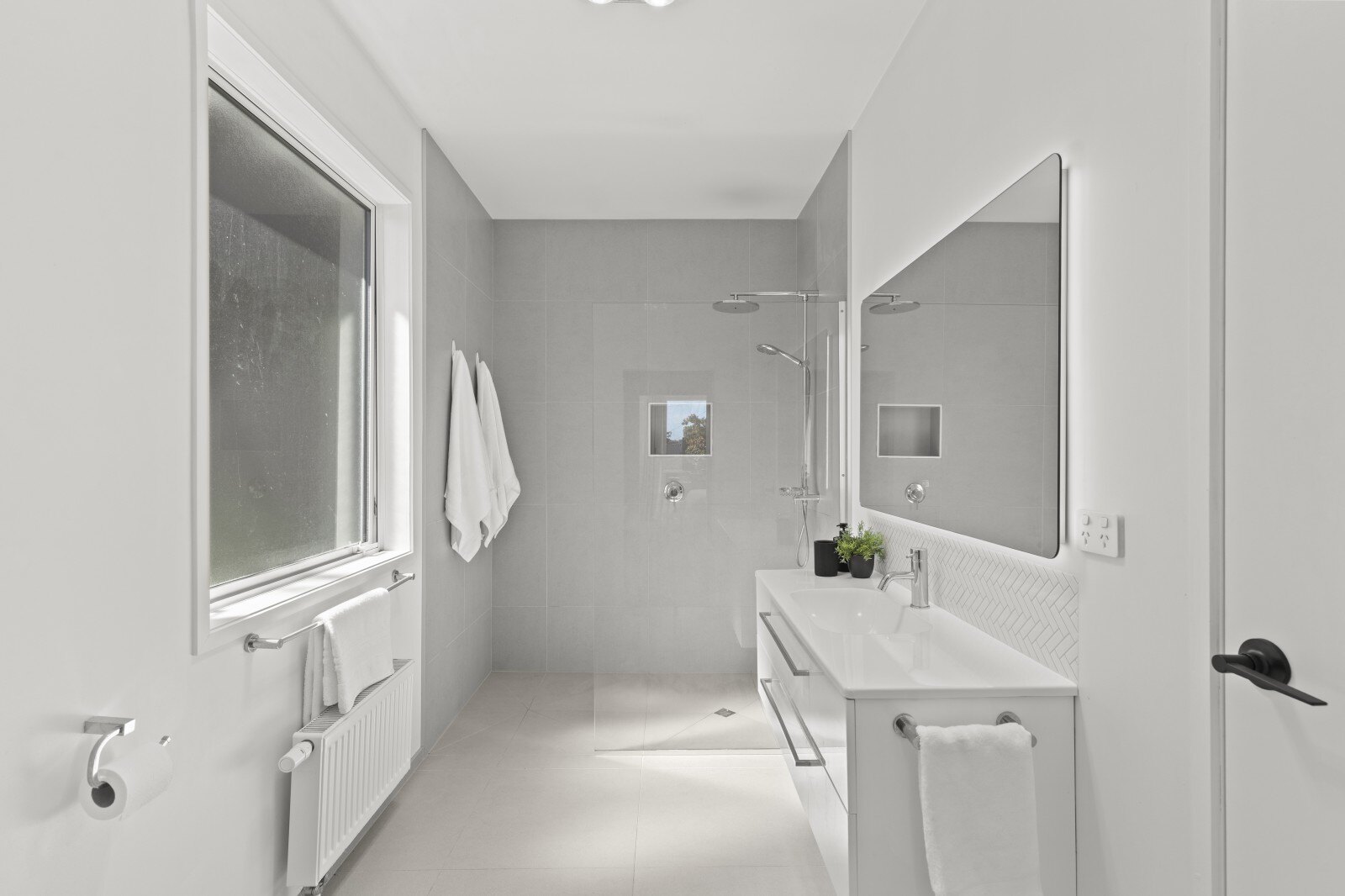 •Both the ensuite and main bathroom are tiled with twin shower heads, newly installed LED back-lit with built in demister mirrors. The main bathroom has a large free standing bath tub.