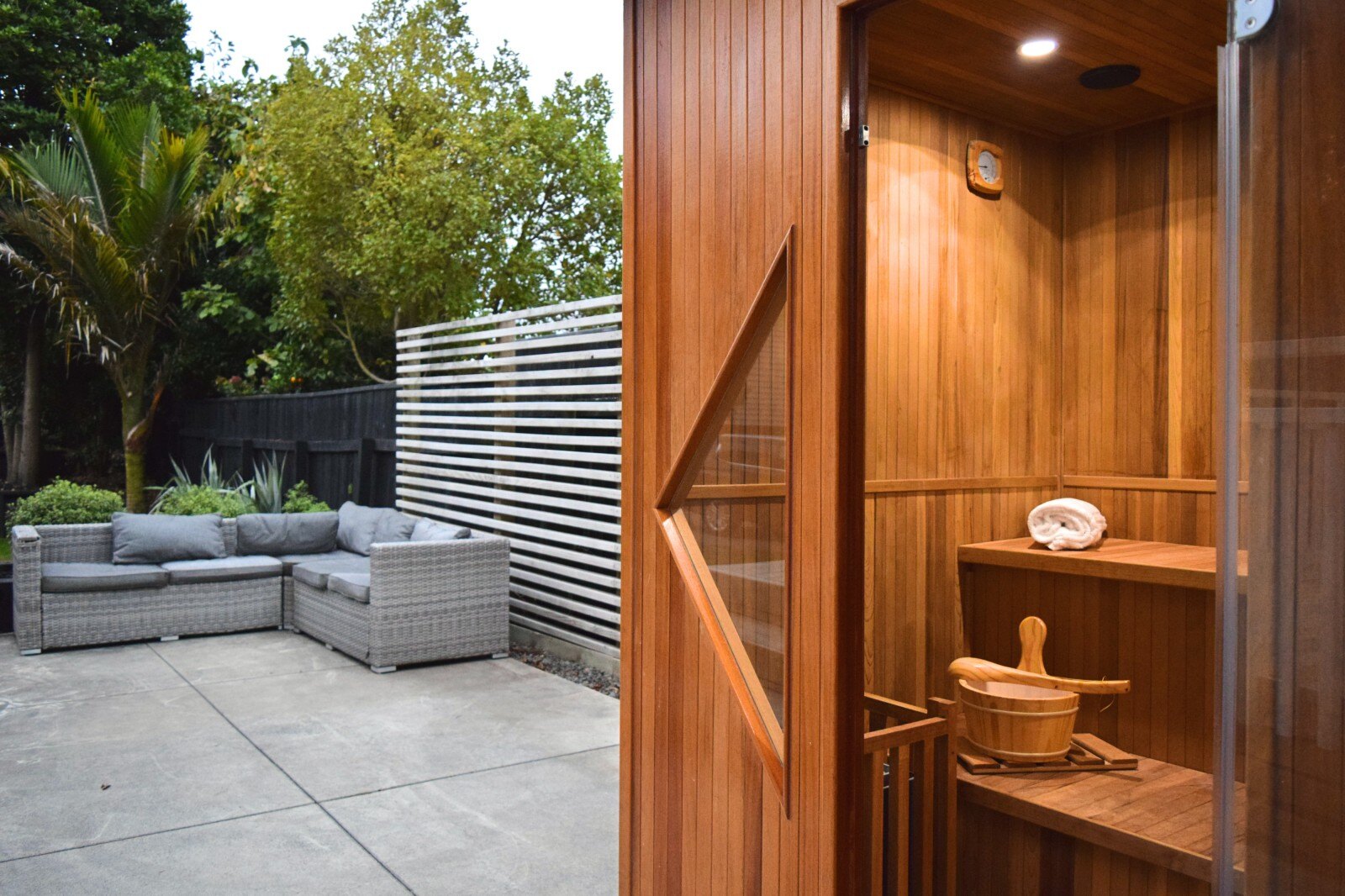 •Fully equipped traditional 6 person sauna with rocks professionally installed.
