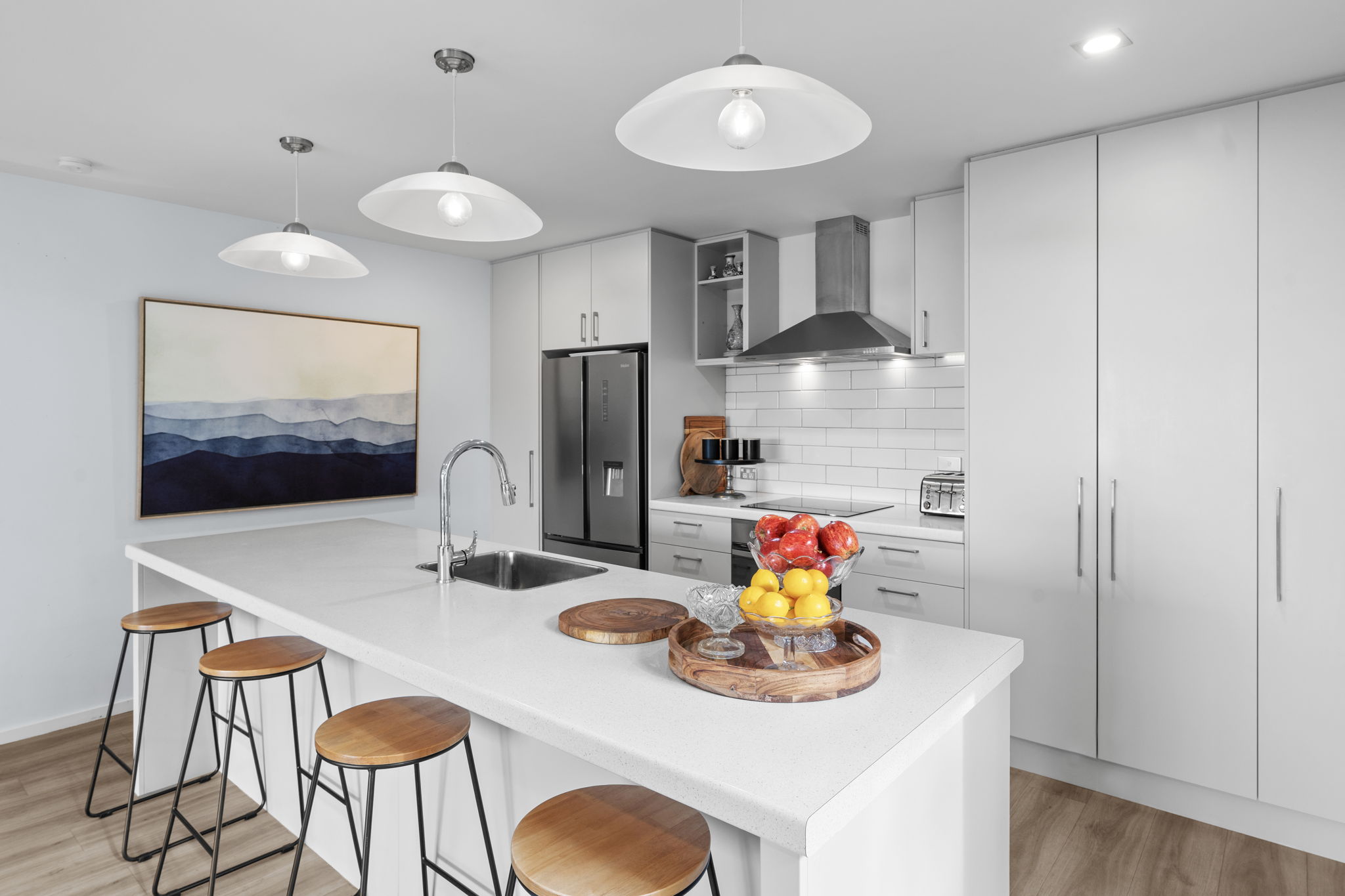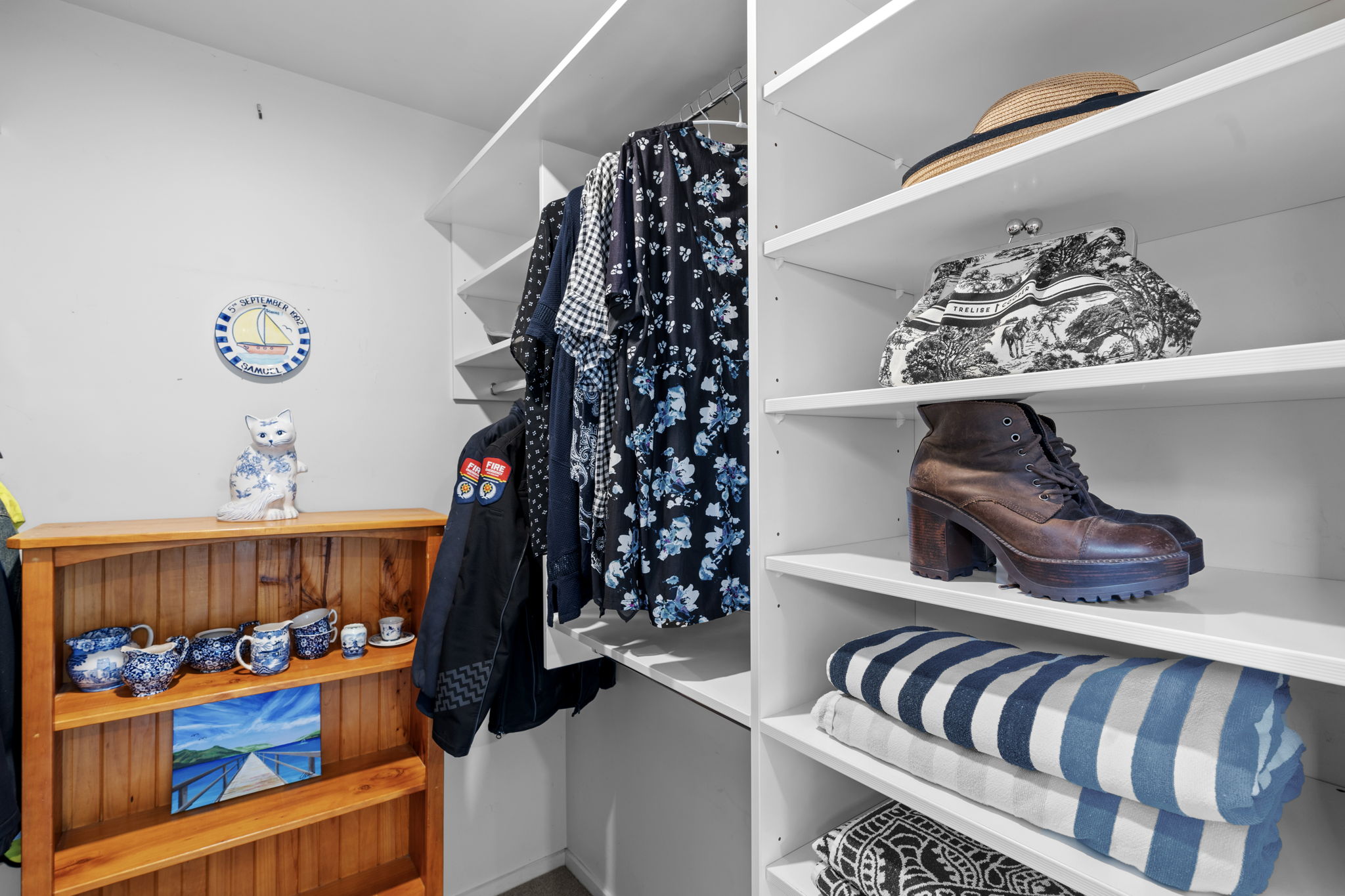 Upstairs, enjoy sun-filled open-plan living with a well-appointed kitchen, guest bathroom, Woodsman wood burner and heat pump, all designed to maximise the incredible outlook. The upper-level master suite is a retreat, complete with walk-in robe, ensuite, and its own heat pump.