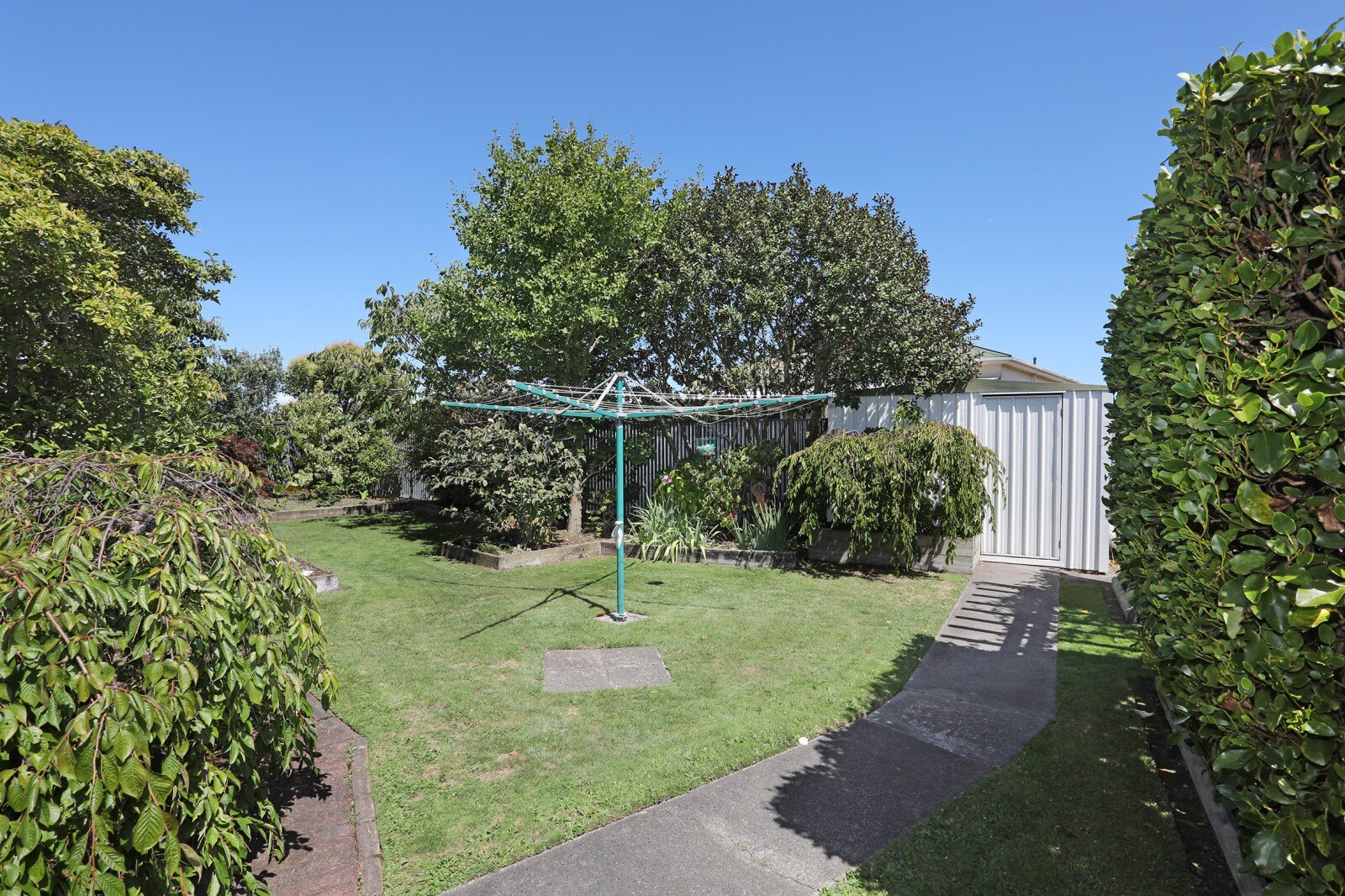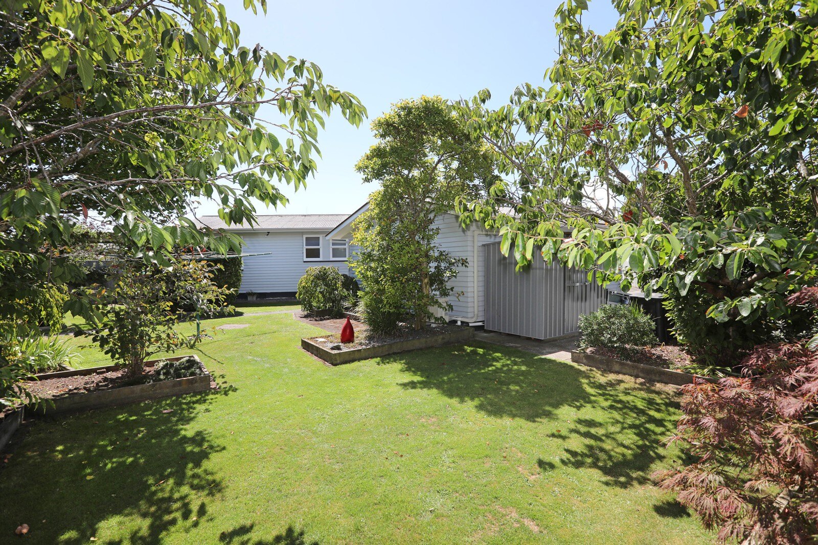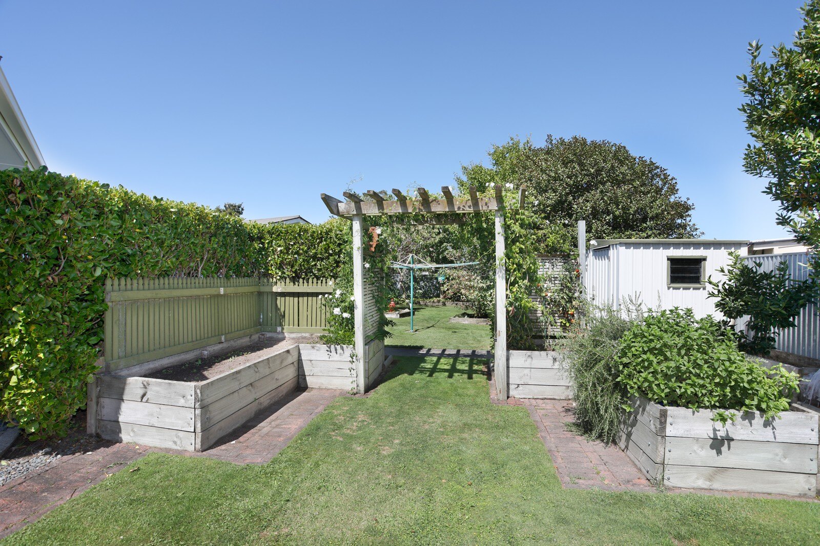 Set on a private section, you will find mature trees and shrubs that provide a serene atmosphere, while the thoughtfully designed garden features mowing strips and raised gardens for the green-thumbed homeowner. The section is fully fenced, providing a safe haven for children and pets alike, there's even a discreet spot for storing your trailer.