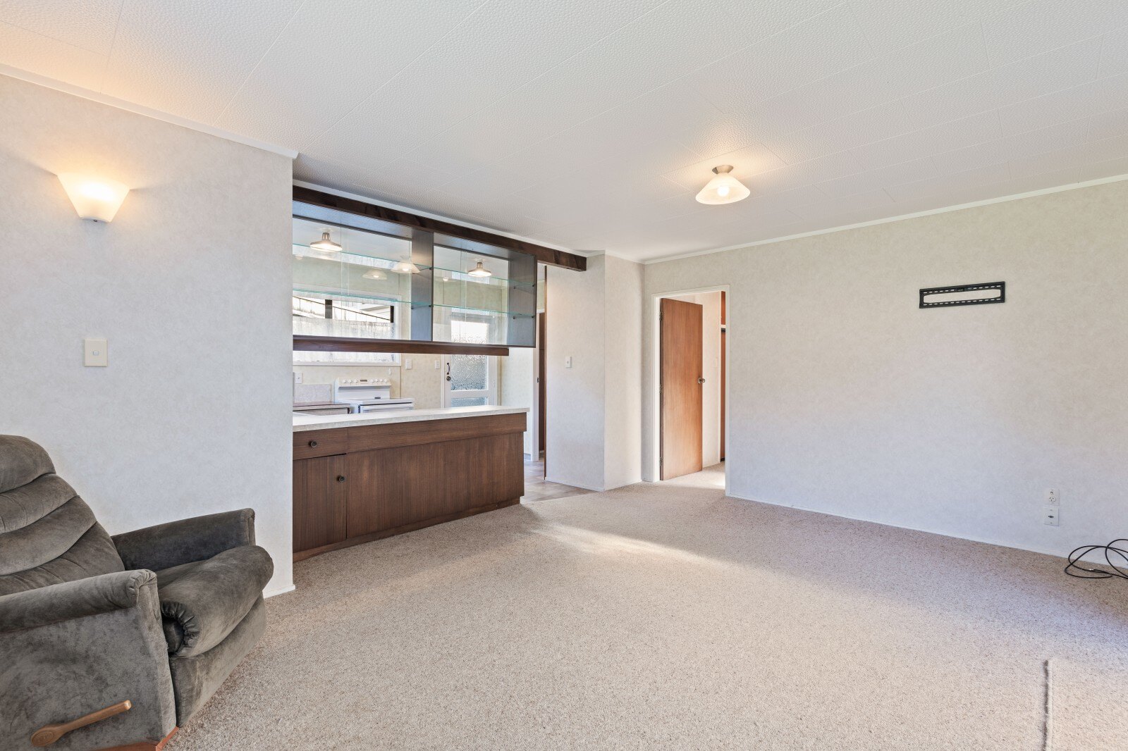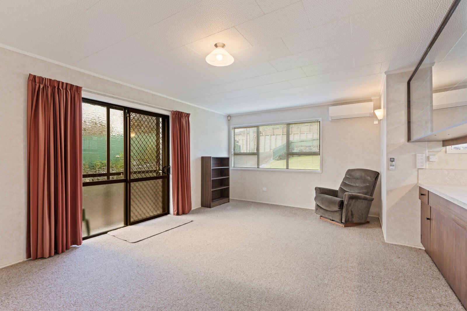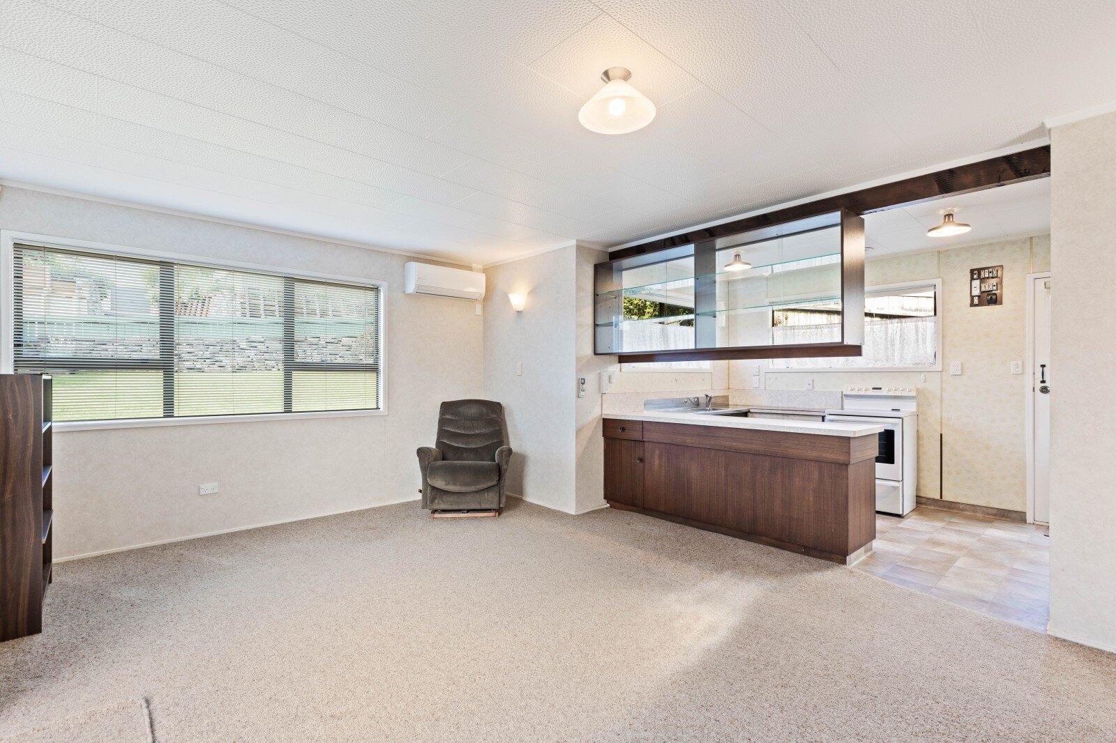 Enter this cosy home through the north facing sunporch to an open plan kitchen and living area which leads onto the 2 bedrooms. An efficient heat pump is strategically placed to keep all those areas nice and warm in these cooler months. Also featuring a double entrance bathroom encompassing a separate toilet.