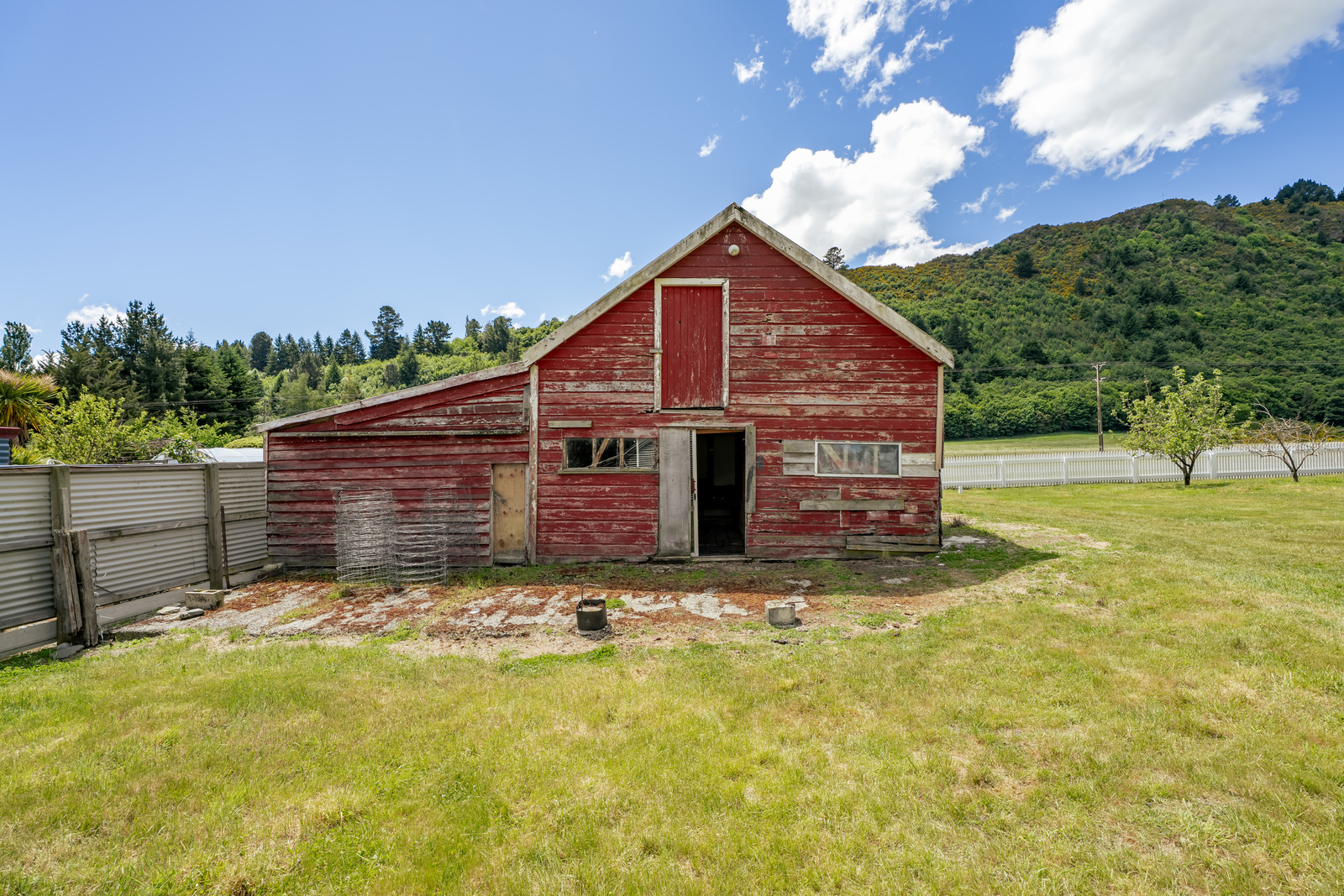 The white picket fence and gates mark the entrance to the expansive 3,062m² level section with its own bore and established fruit trees. The iconic Red Barn, which includes the original stables, oozes history - you can almost picture horses being tied up here a century ago. Adding to the charm, the property also features a blacksmith's forge, further enhancing its historic appeal and extensive outbuilding space.