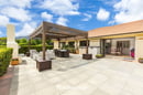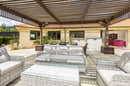 The large entranceway leads into three well-defined wings, making the layout ideal for families, entertaining, or those wanting flexibility and separate spaces. At the heart of the home is a stylish open-plan living zone, anchored by a designer kitchen with granite benchtops, plumbed double-door fridge, and a serving window to the outdoor entertaining area. French doors allow this space to be closed off for cosy evenings.