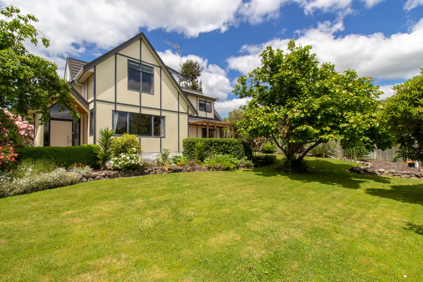 Amazing home with six bedrooms, an office, two bathrooms, two living areas, double car garaging & grand entrance. Nestled amongst the trees sits this spectacularly designed Tudor styled home, with beautiful gardens which have been lovingly tended to, reminiscent to an old English garden. Built in the 80s, it has a solid concrete base, but don't be deceived - its character & space is fit for a king. The heart of the home has a sunny modern kitchen combined with dining, sitting area & views to the gardens. Which living room will you relax in tonight? One has sliding doors out to the sunny patio, also the pellet fire for those winter evenings. The 2nd is on the first floor with the beautiful wooden beams and outlook onto the stunning grounds. The panoramic views of the lake, city and rural from the first floor are sure to delight. You need to see this to believe, you don't see properties like this every day. Come along & enjoy the good life. Holla for Waller! Call Bev or Jason today. LIM Report is available to download.