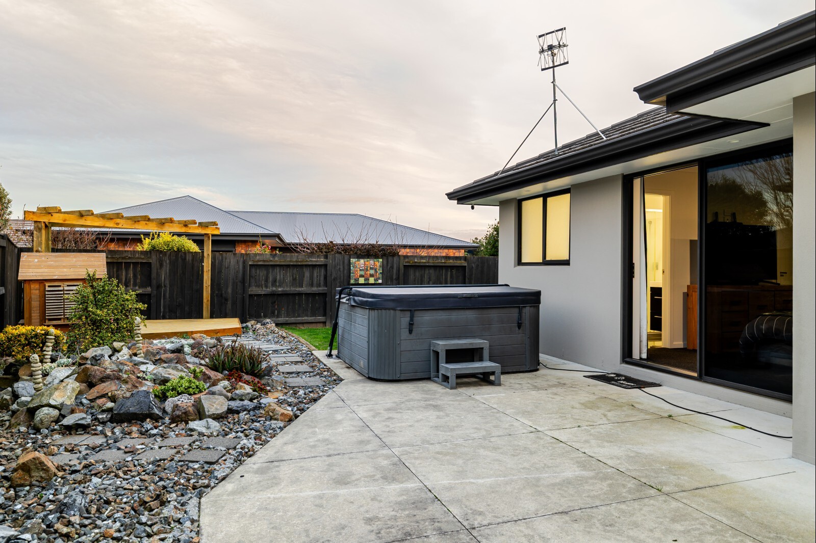 Inside, the home welcomes you with a wide entrance hallway and a sense of space throughout. The open-plan living, dining, and kitchen area is light, modern, and flows out to a concrete patio – ideal for summer BBQs or soaking in the included spa pool. This is a home designed to relax in.