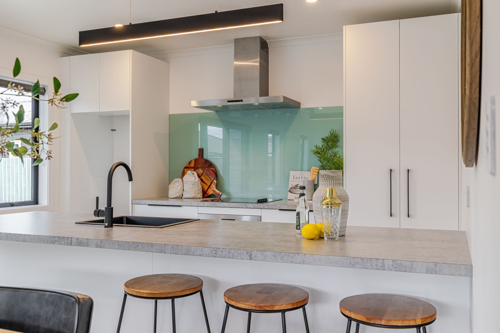 The clever layout keeps living and resting separate. To one side are three generous double bedrooms - two with double wardrobes and a master suite boasting a walk-in wardrobe and sleek en-suite. The family bathroom is tiled and stylish, featuring a shower, bath, vanity and a cleverly concealed laundry. Remote-controlled blinds throughout the home add a touch of everyday luxury.