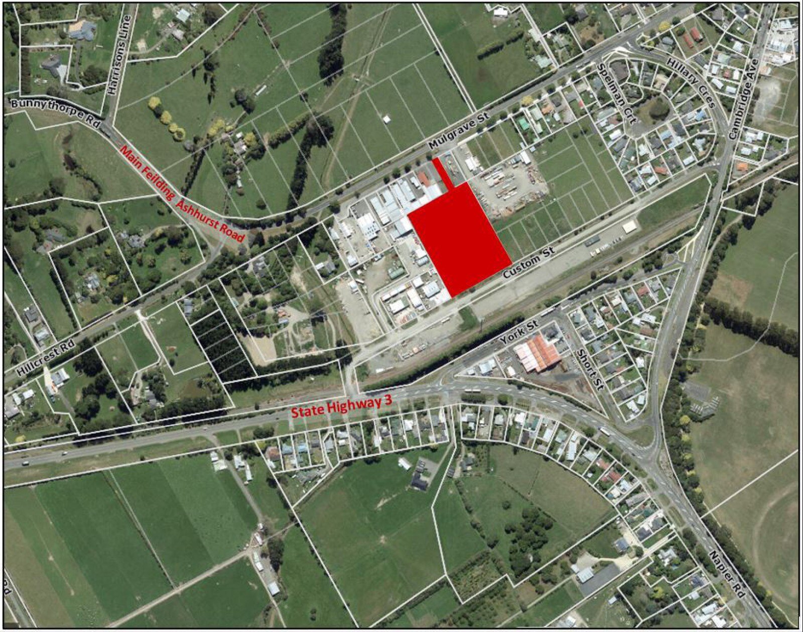 This large parcel of Industrial Zoned land sits on the city side of Ashhurst close to State Highway 3 and surrounded by existing industrial activity. It has access directly off Mulgrave Street (the main highway from Ashhurst to Feilding) and has a long road frontage on the recently upgraded (curbed, channelled and sealed) Custom Street.