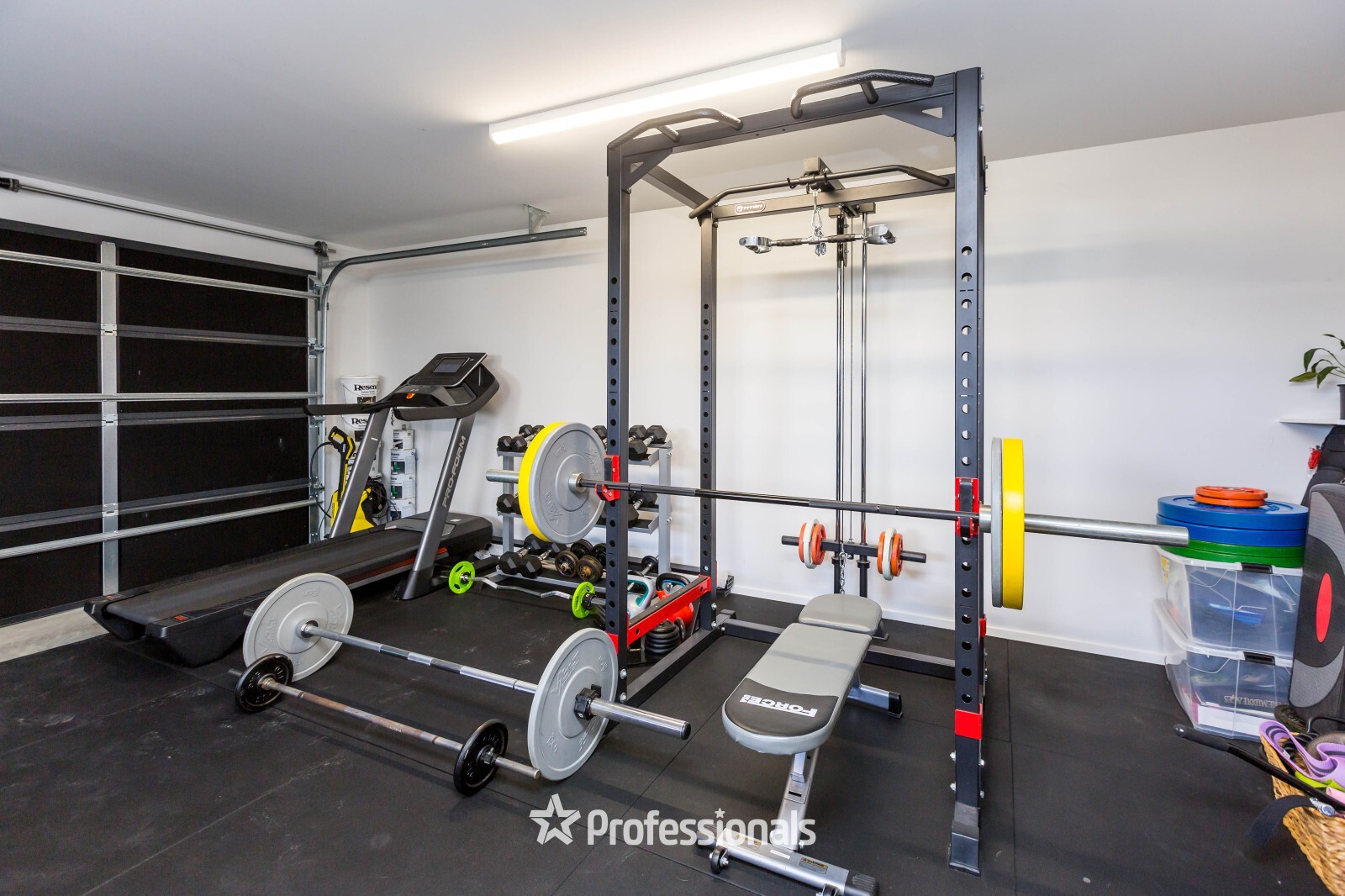 For those who value fitness at home, the garage has been thoughtfully set up as a home gym, with equipment available by negotiation if desired.