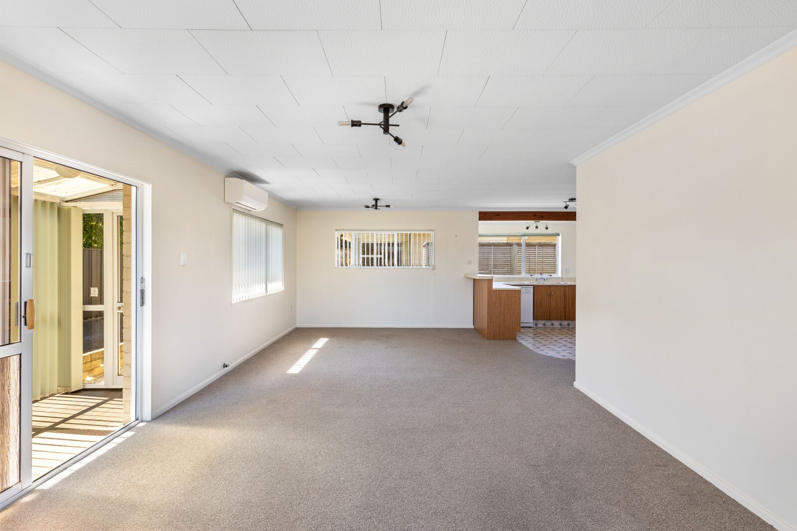 Step into open-plan, north-facing living that welcomes all-day sun and comfort, complemented by a heat pump for year-round climate control. The functional layout flows effortlessly to a well-appointed kitchen.
