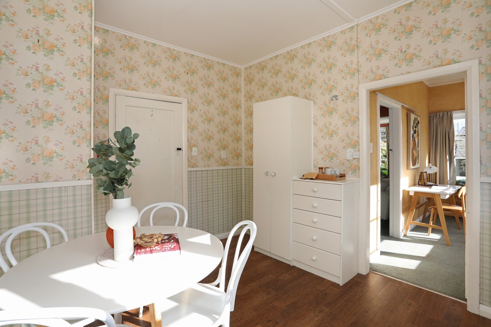Inside the interior boasts a separate kitchen and dining area, ideal for hosting family dinners or entertaining guests. Two generously sized bedrooms with built-in wardrobes offer ample storage space. The property also features a convenient wet floor shower in the bathroom, with a separate toilet providing both accessibility and convenience.