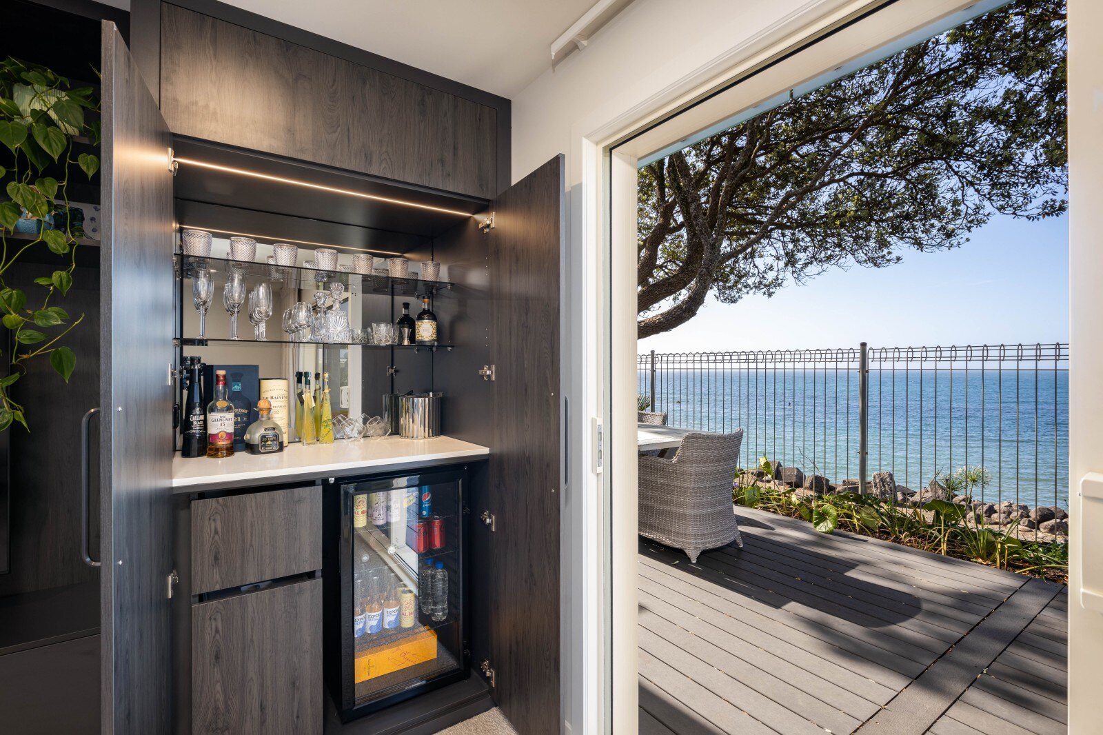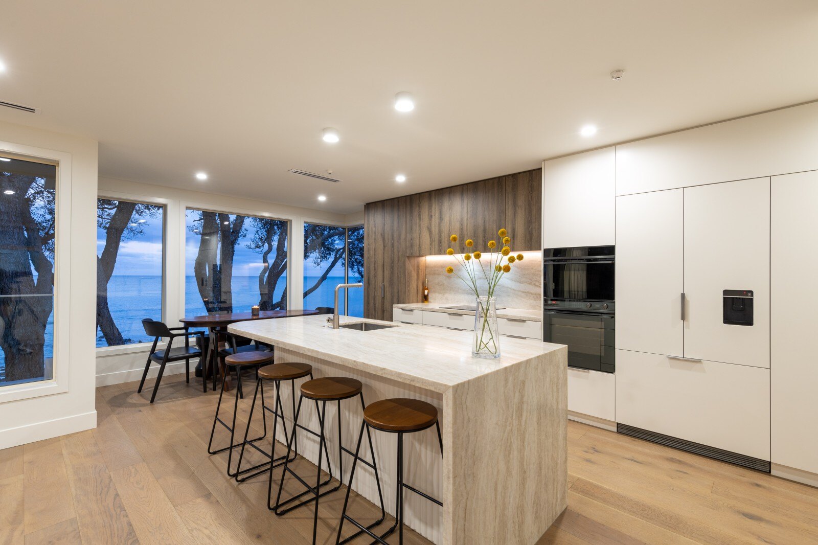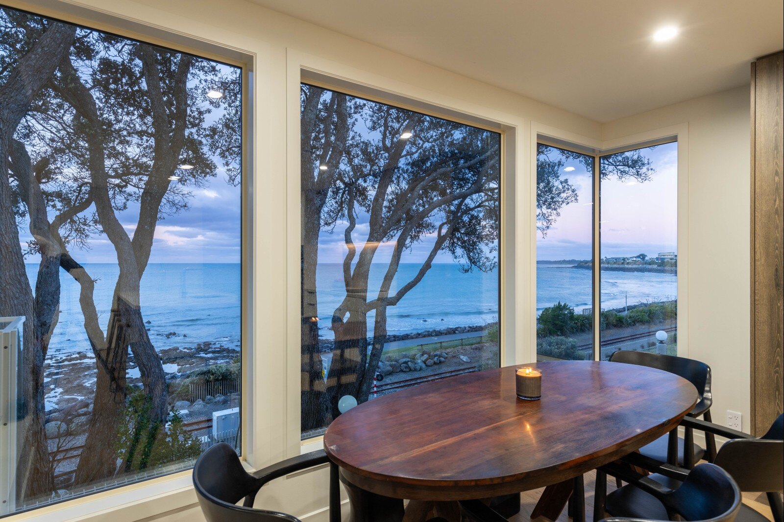 Step into the light filled, spacious entry and ascend the curved staircase to the top floor, where open plan living and dining spaces await, complemented by a stunning kitchen with top tier appliances and finishes. The master suite is a hidden sanctuary, accessed through a concealed door in the timber feature wall, offering a private oasis by the sea complete with a fully tiled ensuite and a wall of wardrobe storage. Step out onto the balcony to take in breathtaking coastal views and nearby coastal walkway.