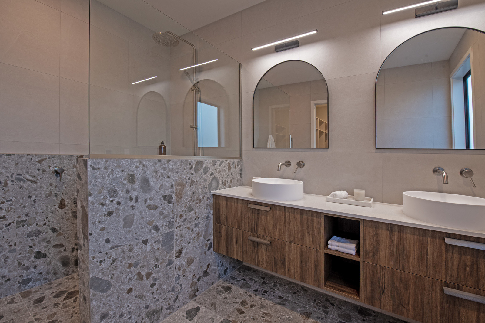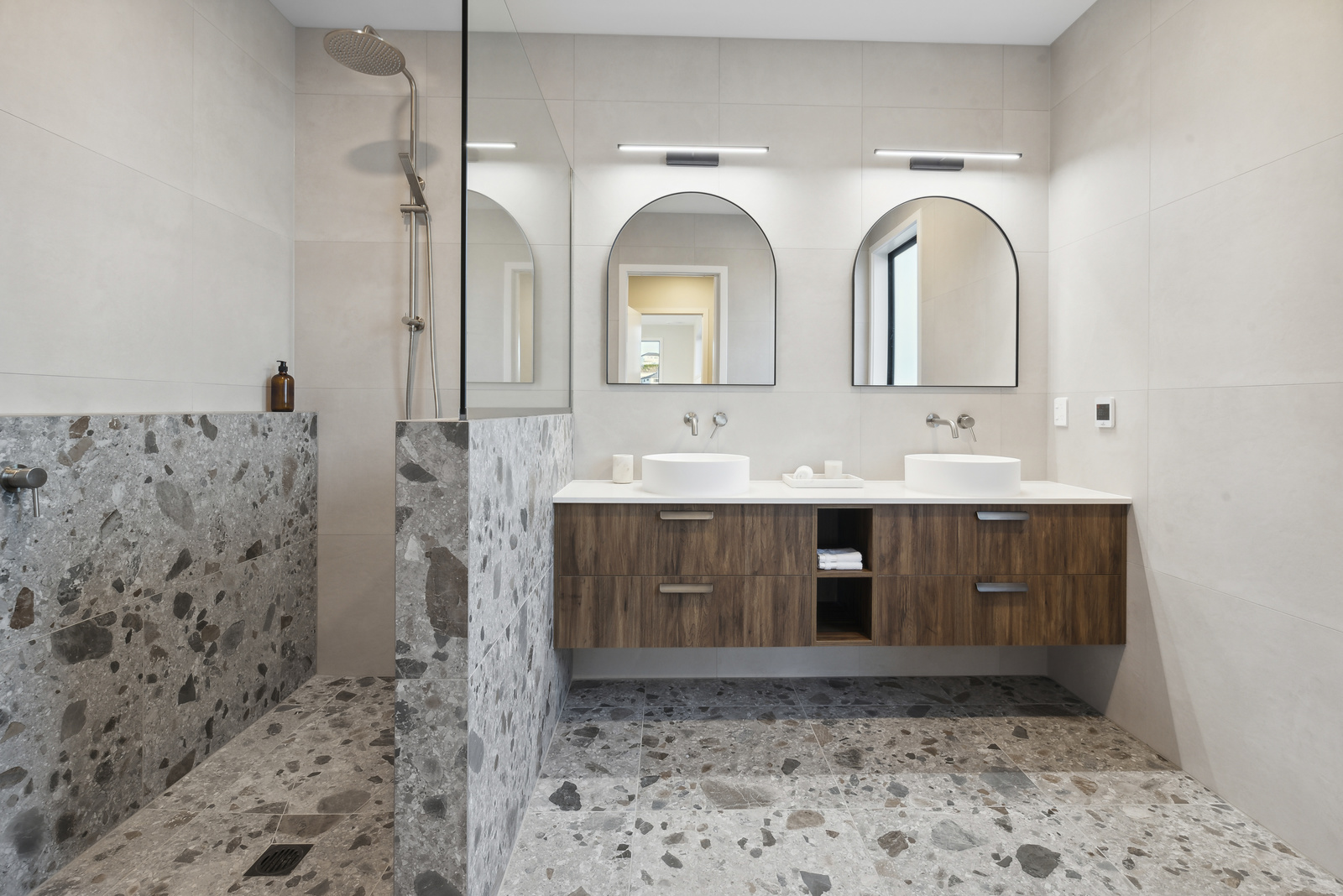 5 bedrooms in total, 2 bedrooms are located to the front of the house completely separate including their own stylish bathroom, this area can be shut off by the barn door. If you work from home, explore the options with the front bedroom doubling as an office space. Upstairs are a further 3 bedrooms, and family lounge with an elevated outlook across to the reserve.