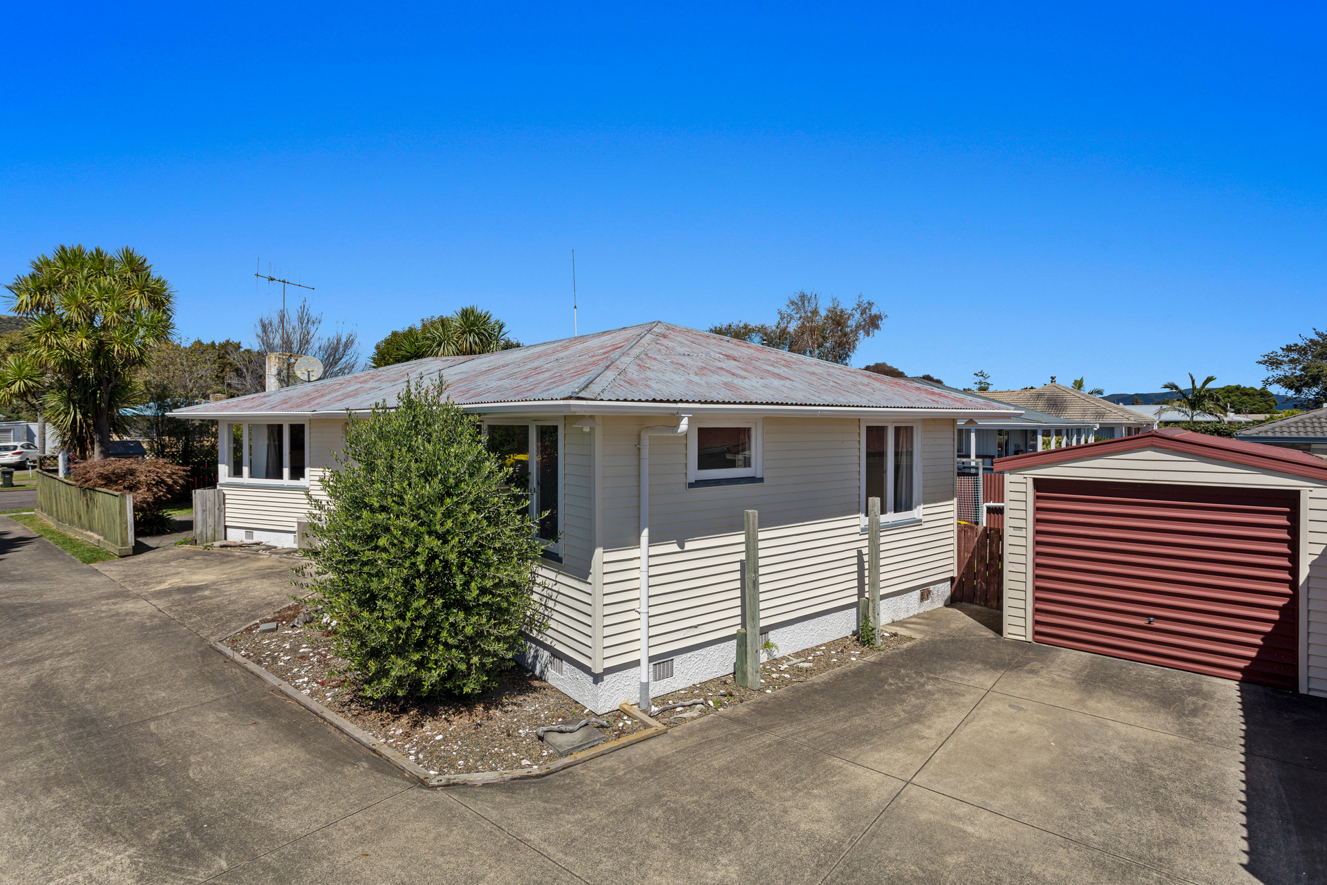 Mowing the lawns won't take long here, the section is 441 m2 (more or less) and there is fencing for little ones and pets. To the side you will find the garage and just around the back a good sized garden shed. By the way the kiddies playhouse in the front yard will remain. Schools are just around the corner and not far to the Kopeopeo township or main Whakatane CBD.
