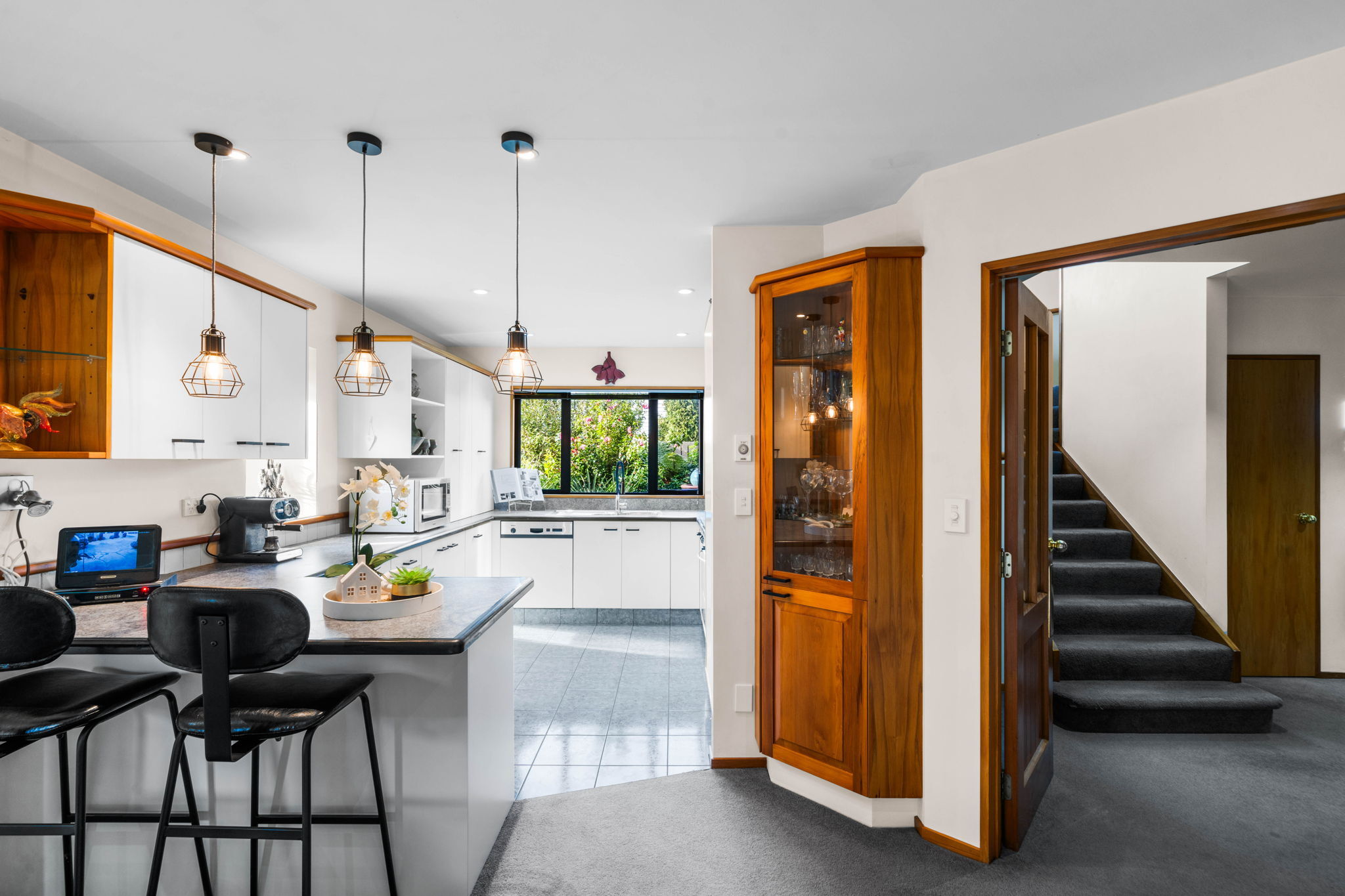 Two heat pumps, underfloor heating in select areas, and a northerly aspect ensure year round warmth and natural light. Practicality meets ease with double internal access garaging, an internal vacuum system, and a secluded garden shed.