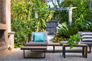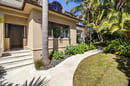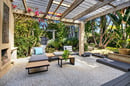 • Outdoor hot tub surrounded by palm trees and a private backyard