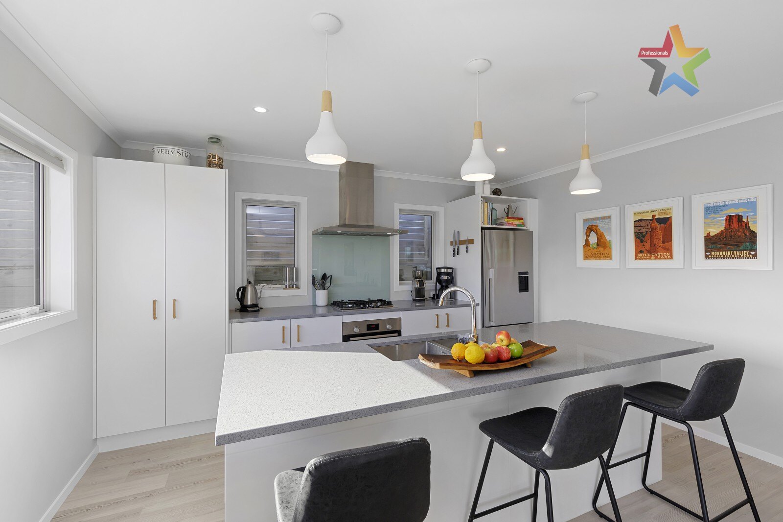 Sold to the current owners as one of the premium sections in this development, 157 Waipounamu Drive sits elevated with commanding views out to Belmont Regional Park and Wellington. This site attracts all day sun and a good sized outdoors area while also being easy care. The current owners installed various upgrades throughout the building process including gas cooking appliances and an infinity hot water system, premium stone kitchen benchtops and electrical upgrades. The living and kitchen space is open plan with sliding doors leading out to the sunny rear section - a perfect house for entertaining and secure for kids and pets. The bedrooms are a good size with the master featuring an ensuite and triple wardrobe. The bathroom features separate bath and shower and is finished in quality fixtures and fittings.
