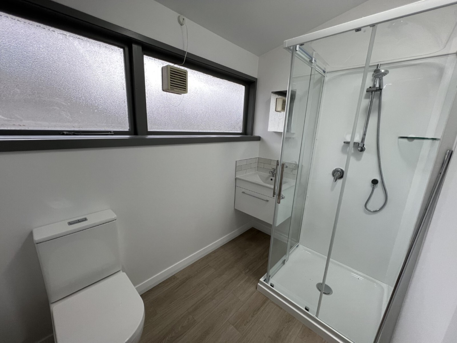 - Bathroom, with shower, toilet and vanity