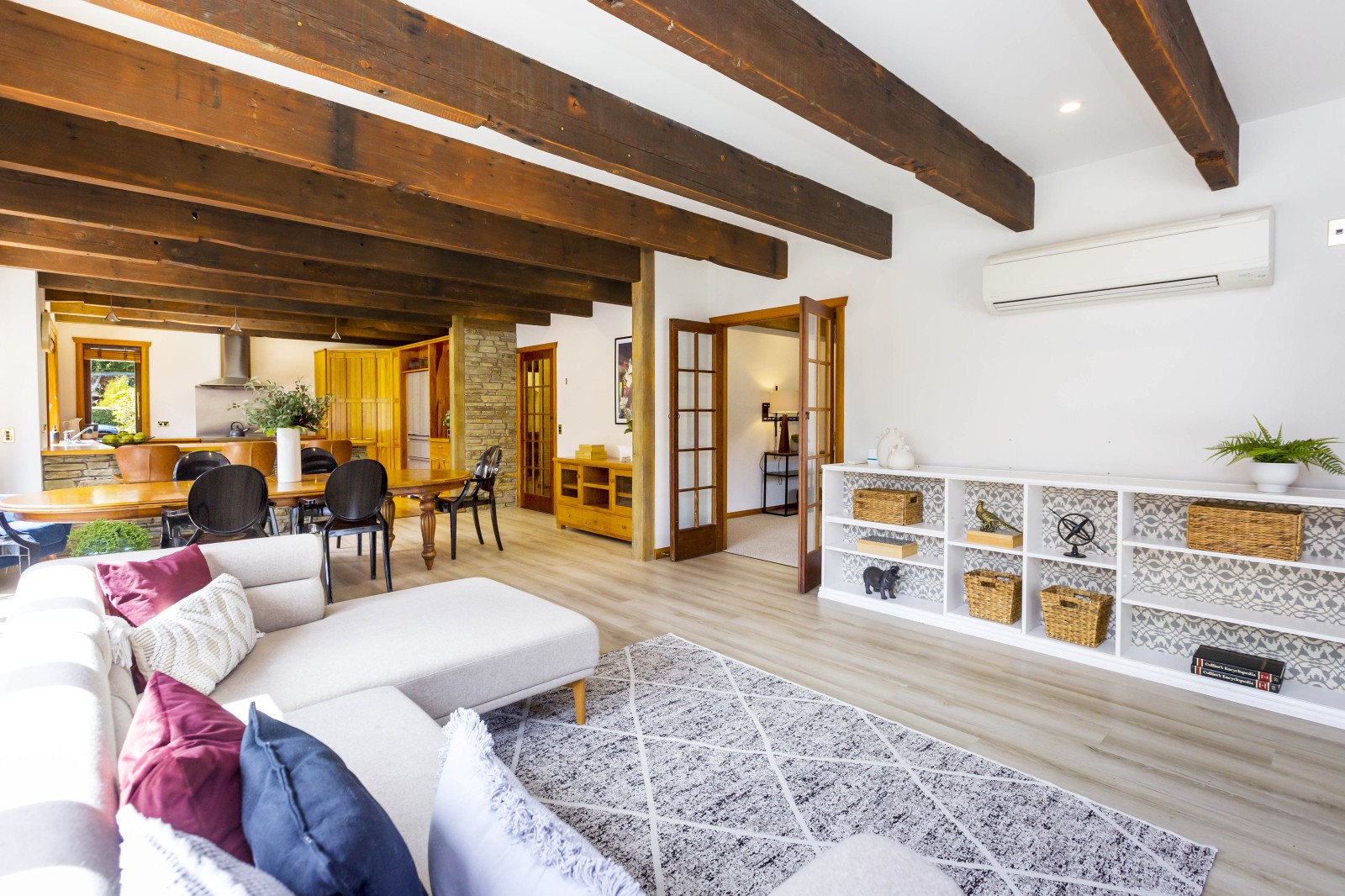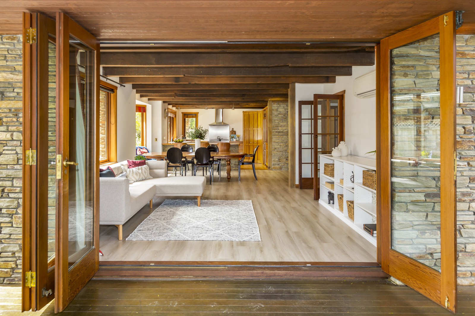 This is a home that tells a story and is built with the finest materials that could be sourced or repurposed. From the central Otago schist that clads the home, the Oregon timber beams that were repurposed from the Hood Aerodrome, to the stairs that were crafted from heart rimu reclaimed from the Quinn's Post Motel.