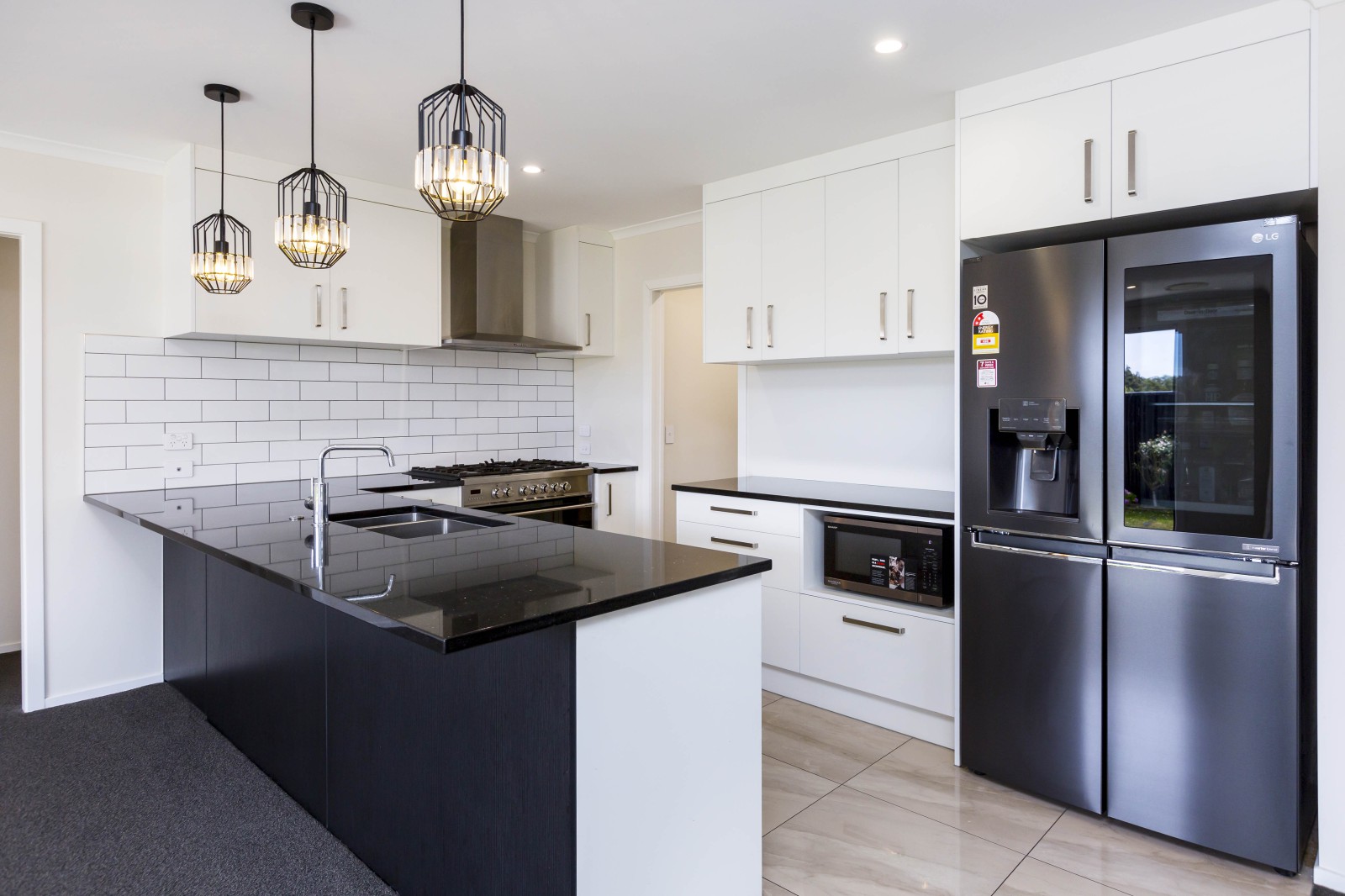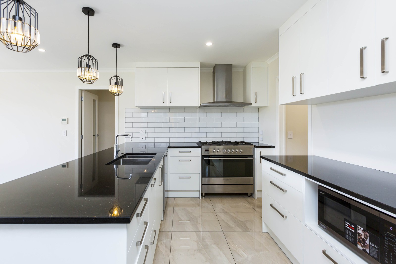 * Modern Kitchen: Equipped with a gas stove top, large oven, dishwasher, and a large walk-in pantry for all your culinary needs.