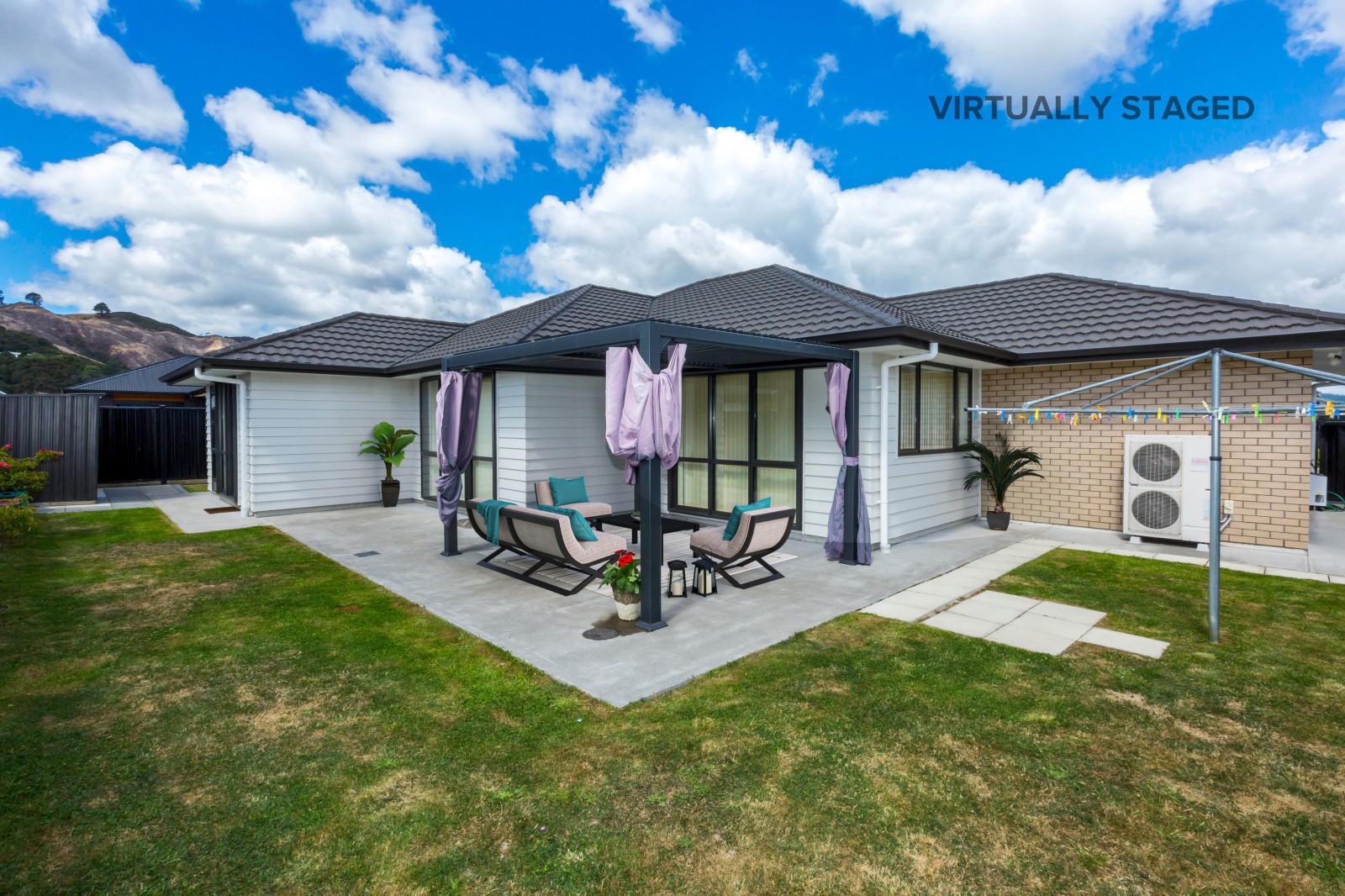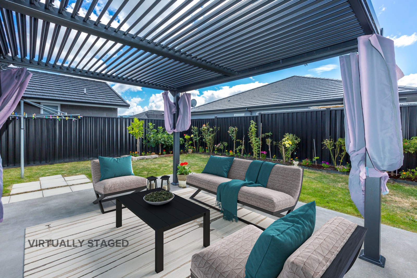 * Covered Entertainment Area: Perfect for outdoor dining and entertainment.
