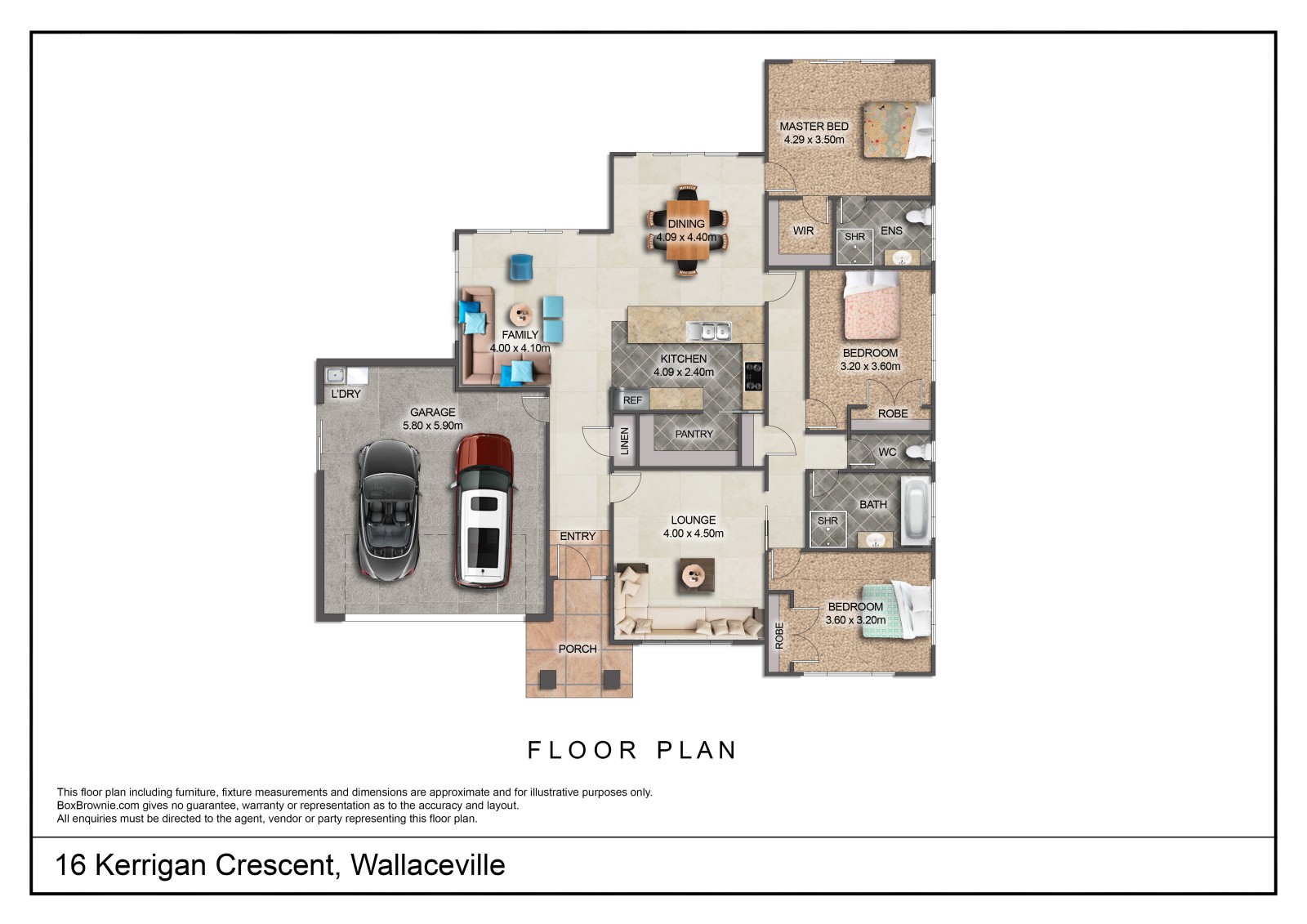* Additional Amenities: Fully fenced for privacy, alarm system for security, garden shed for extra storage, and a double internal garage for convenience.