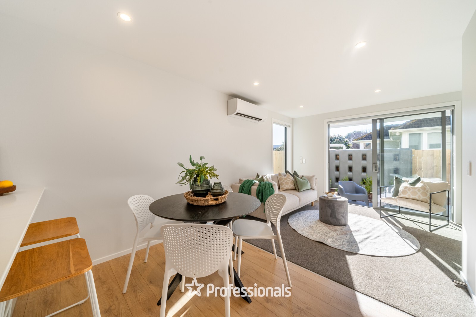 - Open plan dining and lounge flowing out to a fenced courtyard