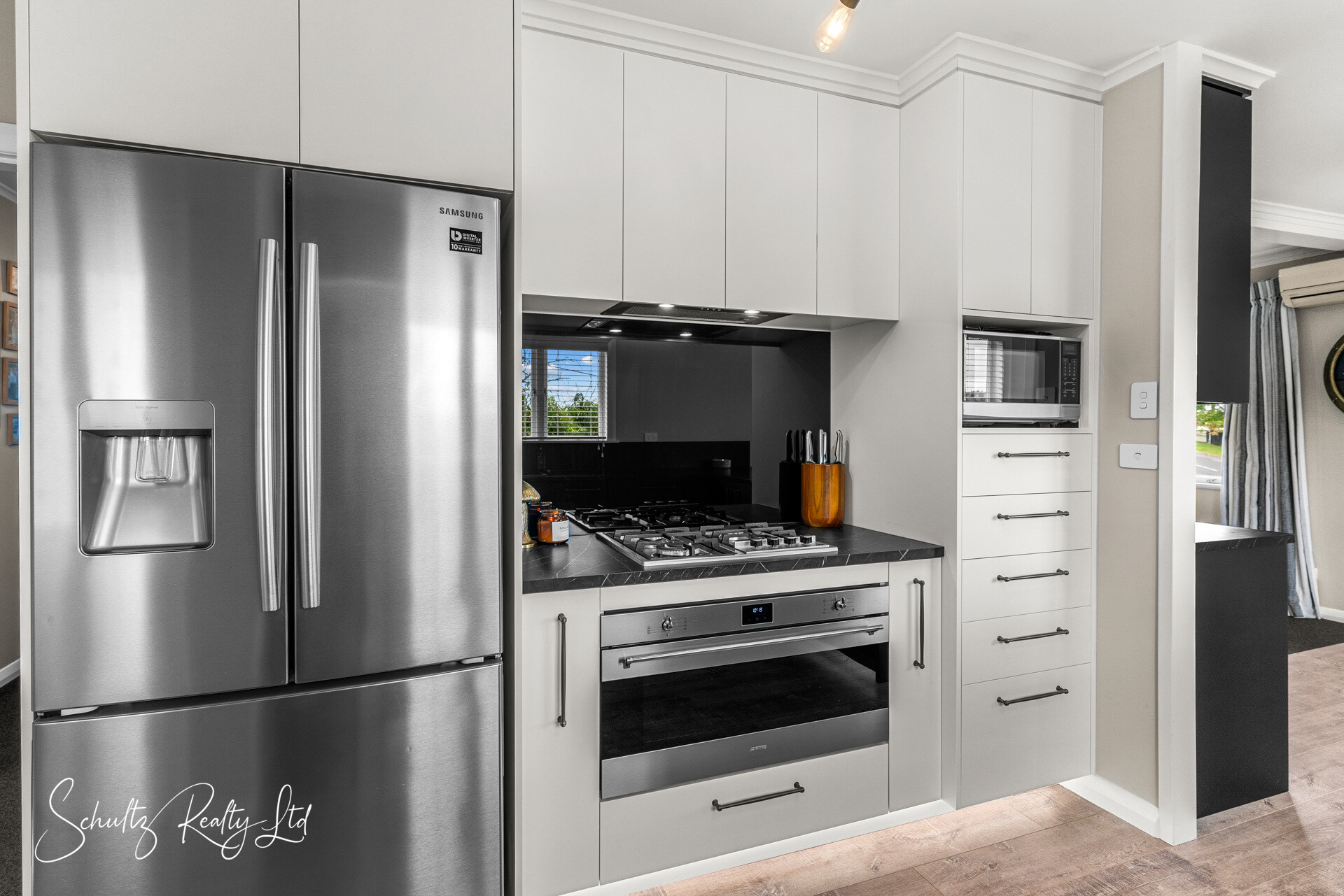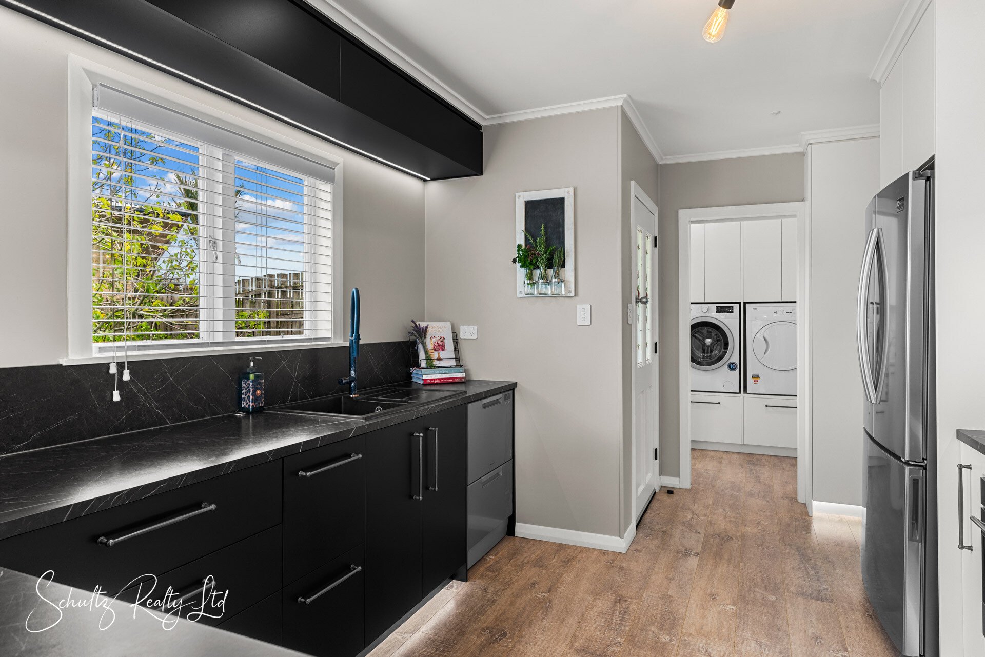 Step inside to a light-filled, open-plan kitchen, dining, and living area, perfect for entertaining. The brand-new galley-style kitchen boasts sleek cabinetry, stunning benchtops, a 900mm under-bench oven, gas hob, rangehood, and a double-drawer dishwasher. A well-designed laundry and scullery with an extra sink and additional storage complete the space.