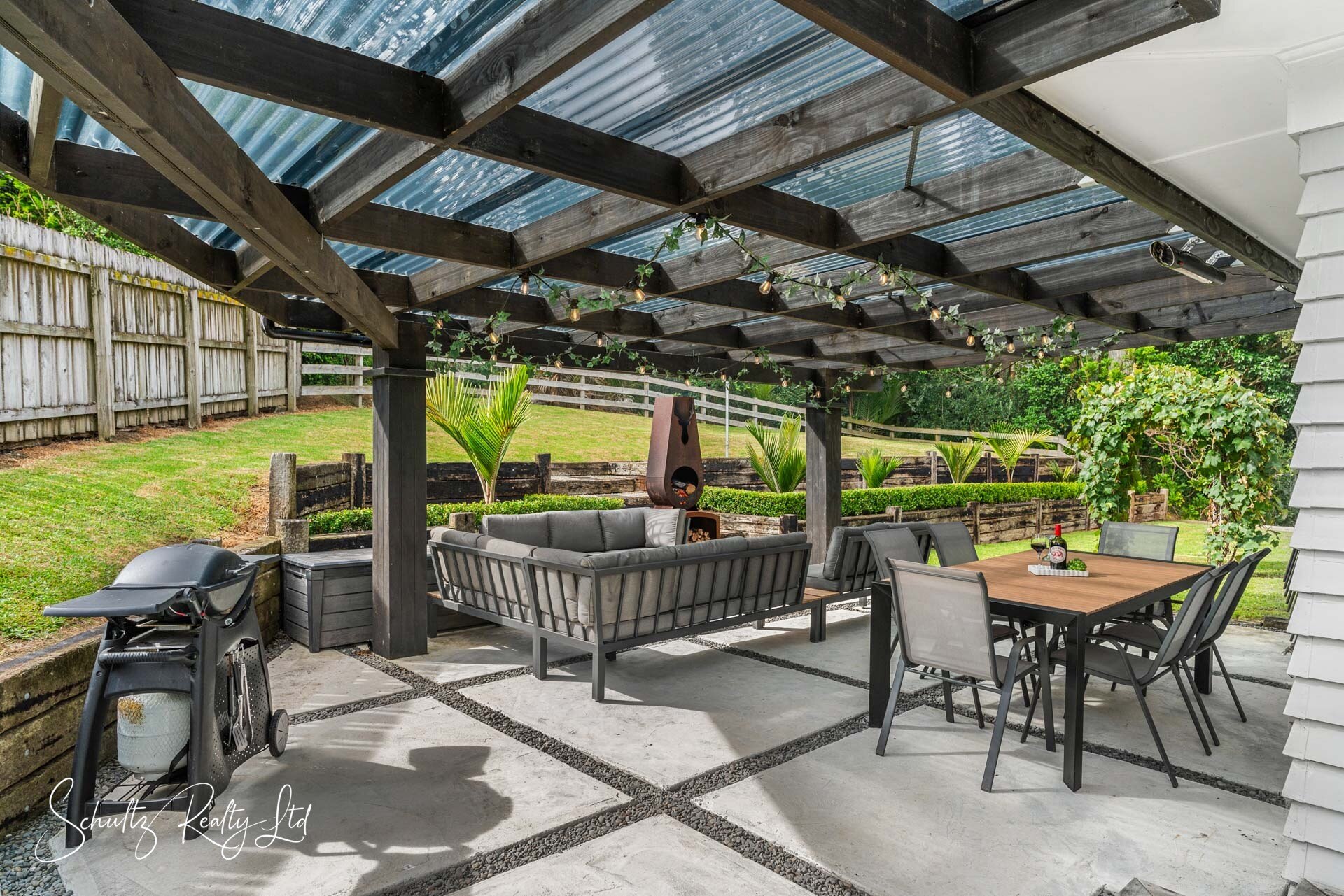Outside, the manicured and landscaped section is a private oasis with a covered outdoor entertaining area, perfect for relaxing or hosting guests. A dedicated outdoor kitchen sink with hot and cold water makes fish filleting a breeze. The property also features fruit trees, a spacious single garage, and a unique water system with both mains and a supplementary tank for excellent pressure.