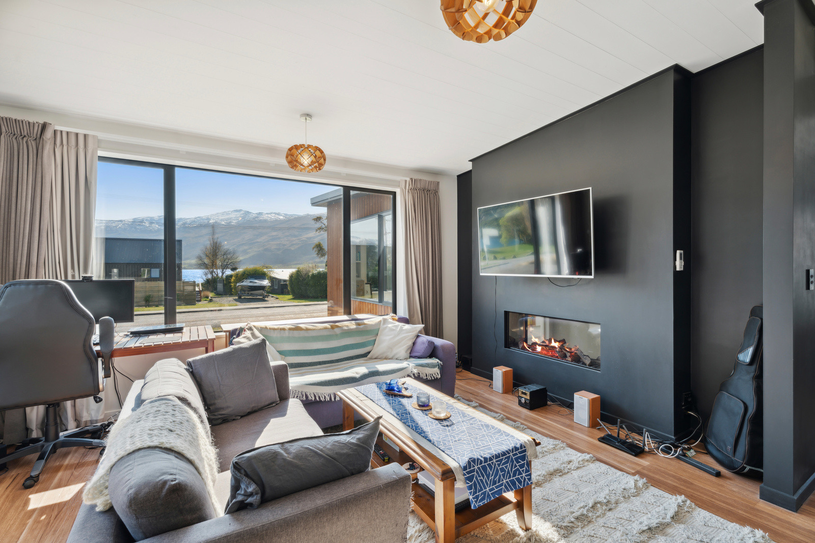 The spacious kitchen and living is positioned to take advantage of the views towards the lake and empowering mountains. Bifold doors open from the kitchen onto a sheltered patio at the rear for the property to enjoy an evening BBQ with friends. There is a central gas fire in the living space along with a heat pump to ensure that you are warm throughout all seasons.