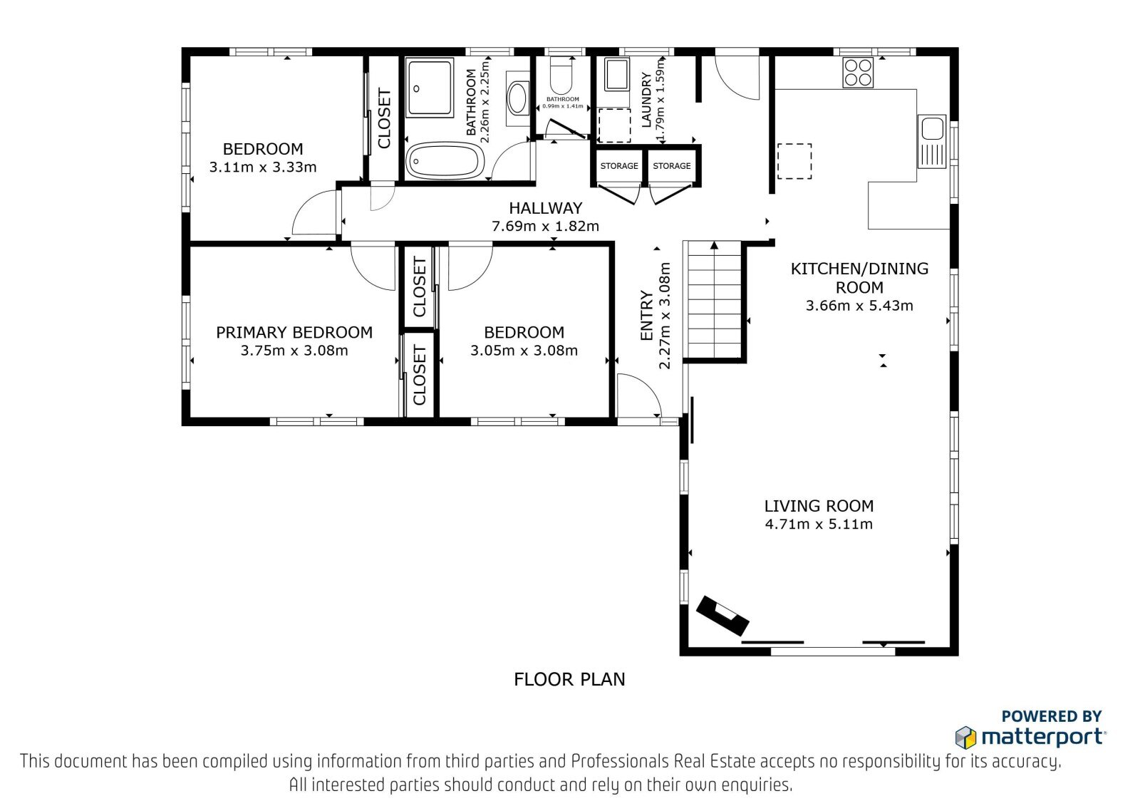 Follow the doorway to the hallway, to your left is the internal staircase down to the garage, to your right is the laundry and door to the back yard. Further down the hallway is the modern bathroom with a large tiled shower, bath and vanity. The toilet is separate. At the end of the hallway are the three double bedrooms, all with wardrobes.