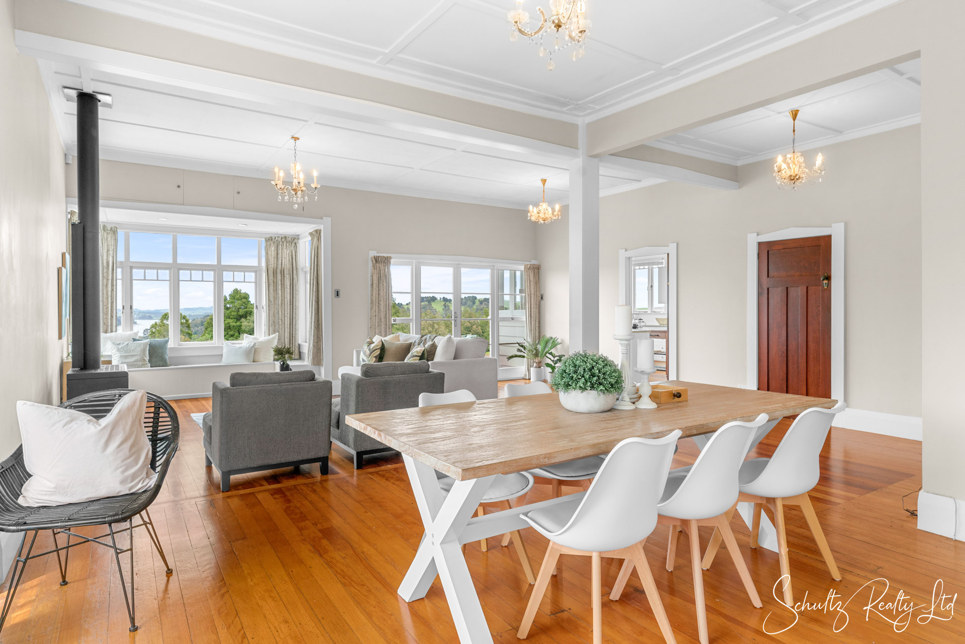 The living and dining areas boast grandeur on a scale that redefines elegance. Marvel at the wide skirtings, bask in the glow of chandelier lighting, and discover the hidden charm of window seats with extra storage capacity. A wood burner in the living room adds a touch of coziness, creating a perfect atmosphere for gatherings or quiet evenings by the fire.