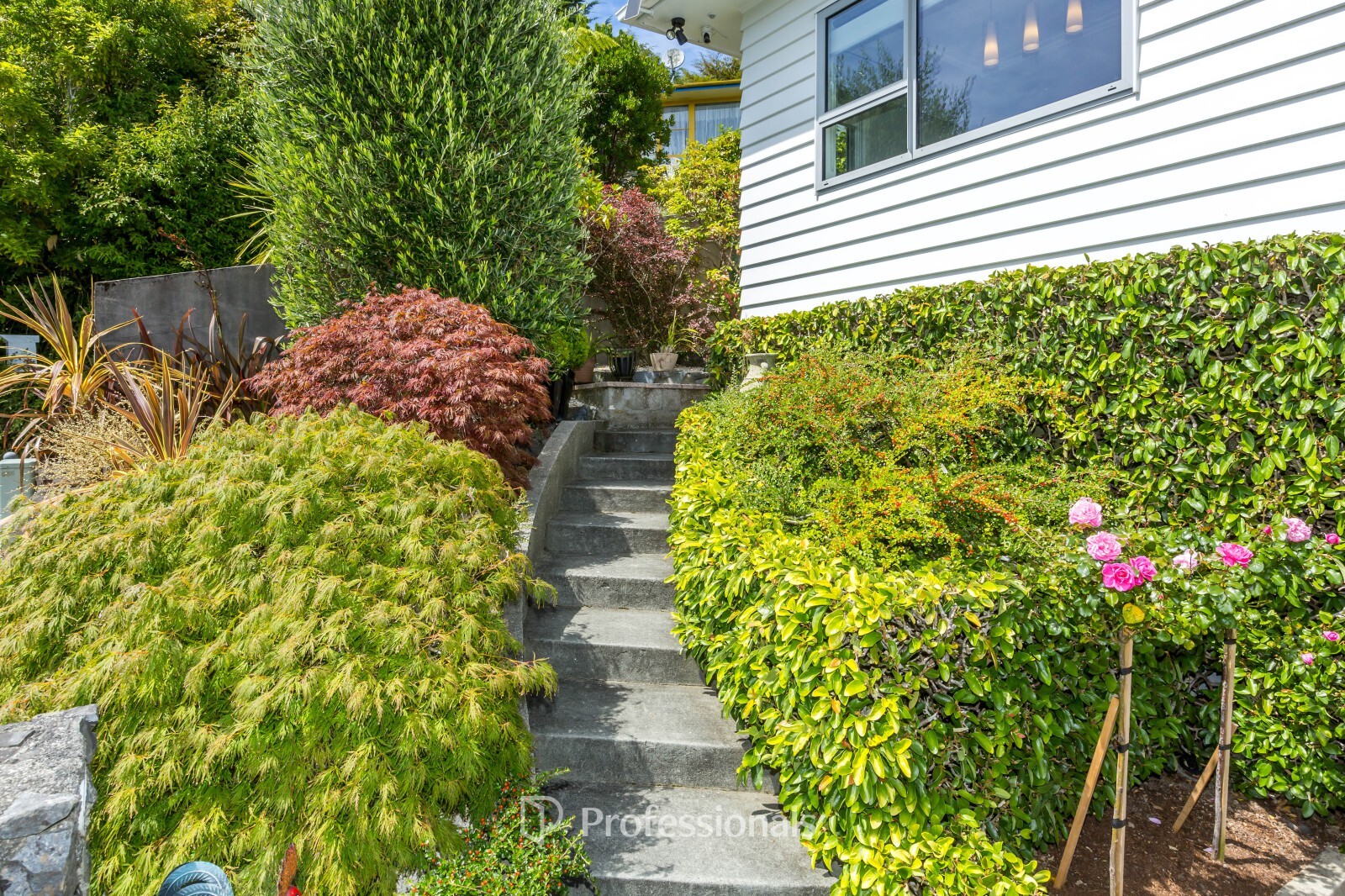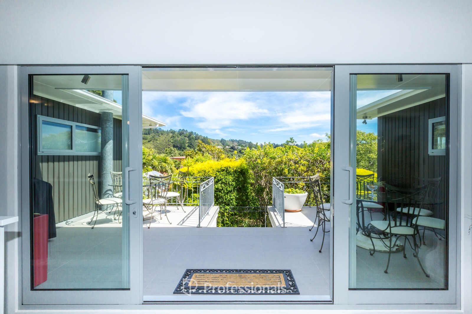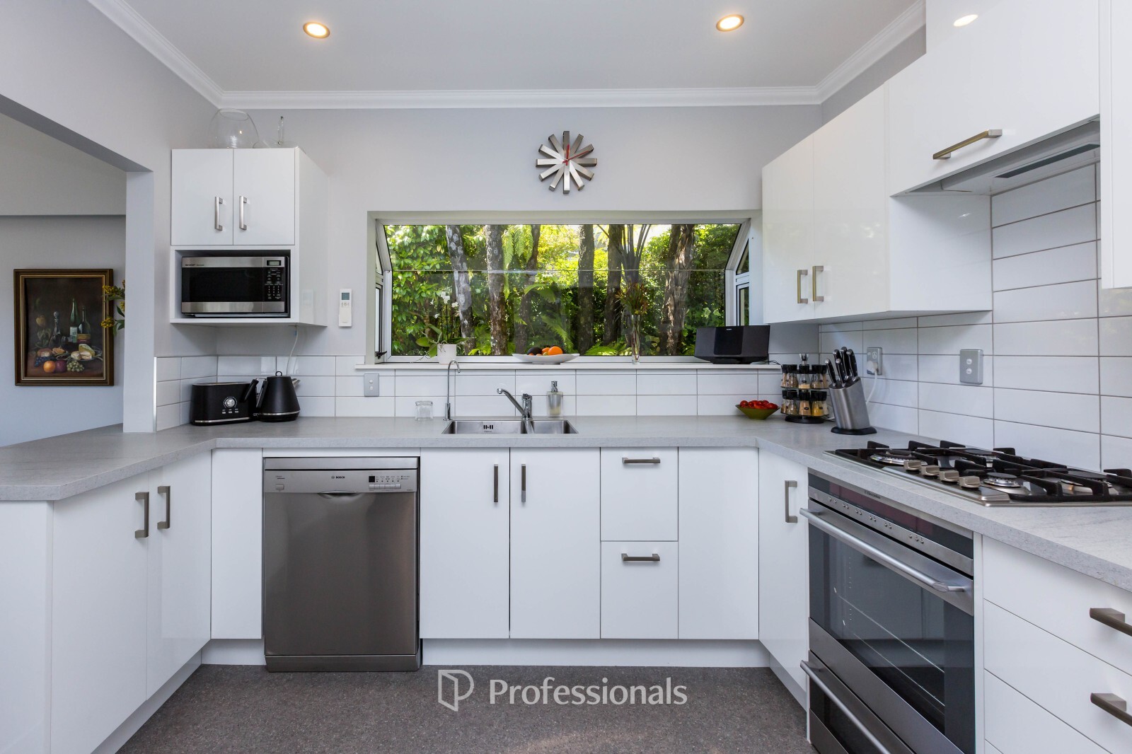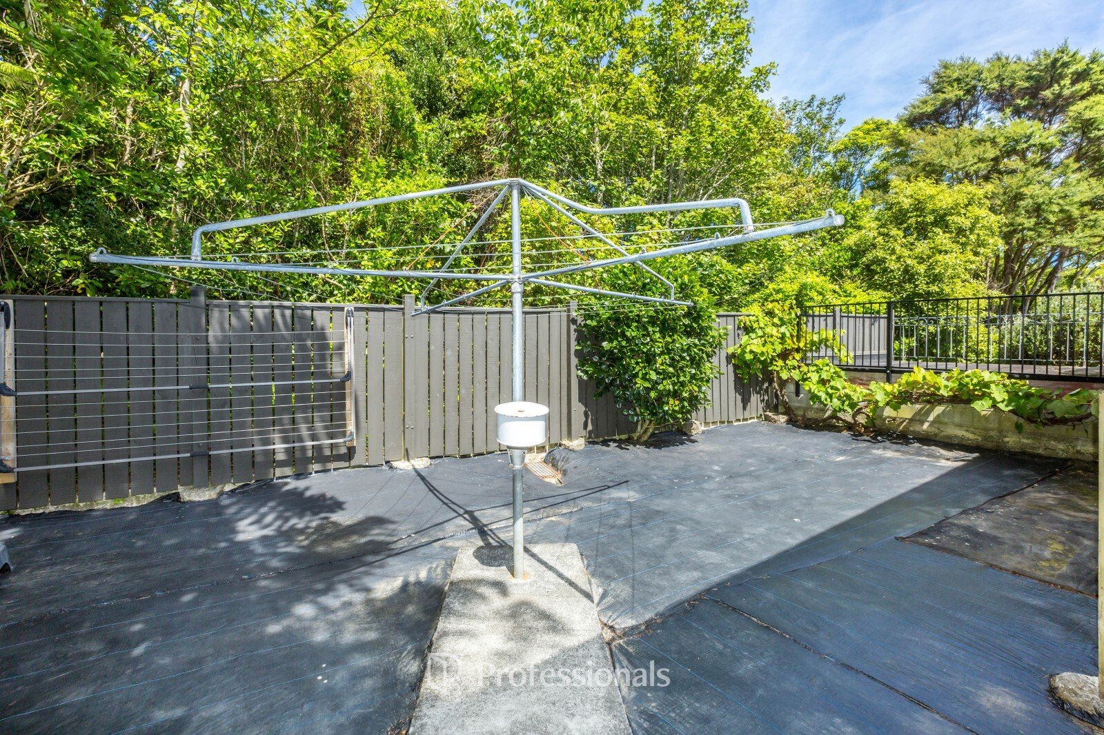The laundry is large, functional and well equipped with excellent storage, a tub, and washing machine and dryer included in the chattels. The back door leads outside to the beautifully presented back of the home, where retaining walls run the length of the house, framed by neatly maintained shrub gardens.