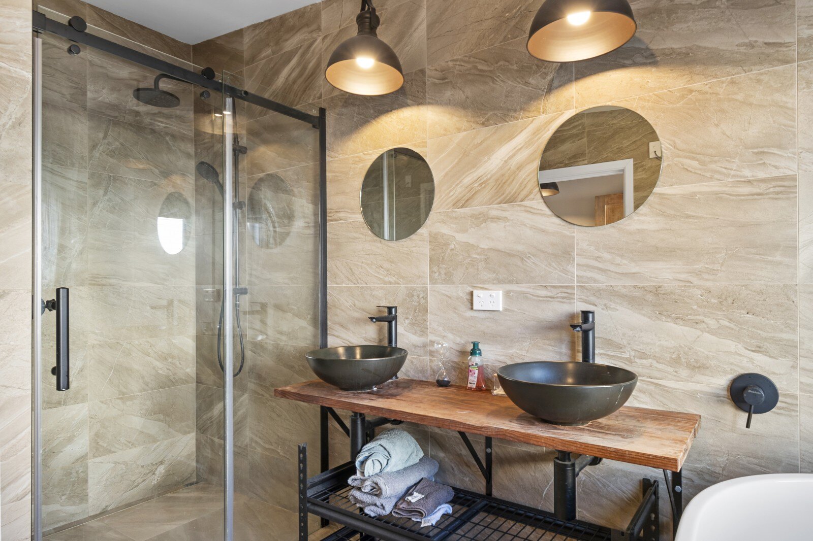 The stunning bathroom is a haven of relaxation with a luxurious deep bath, perfect for unwinding after a long day. Immerse yourself in comfort and tranquillity in this spa-like setting. In addition to the relaxing deep bath and twin, "His and Hers" sinks, the bathroom boasts a stunning spacious shower. Designed with elegance and functionality in mind.