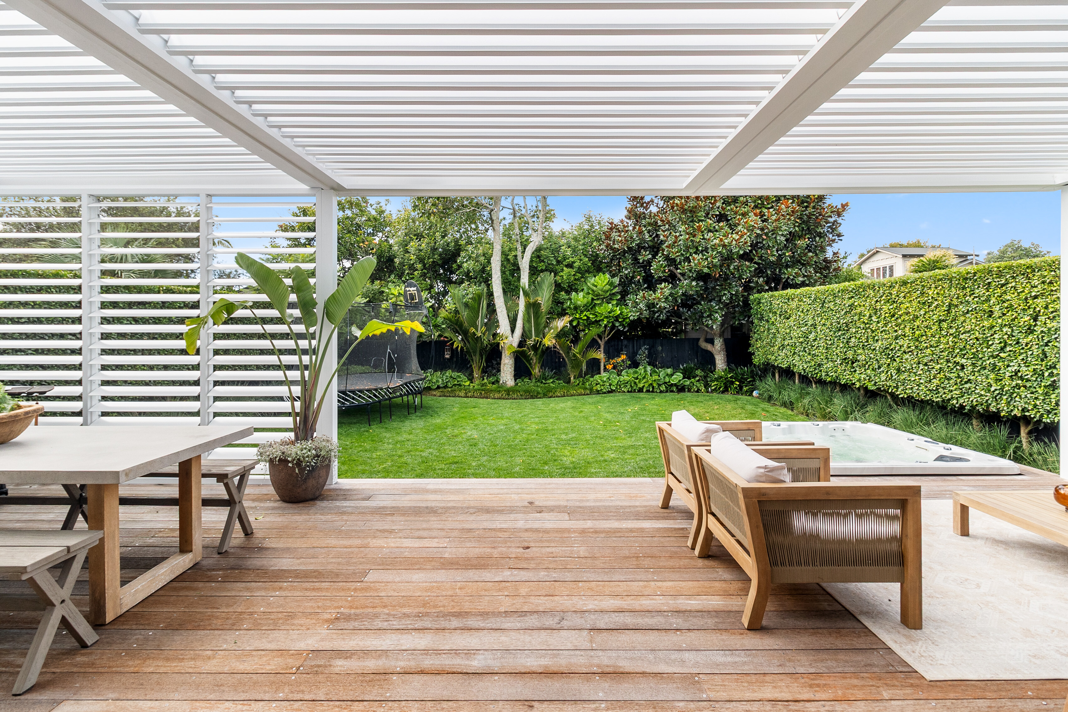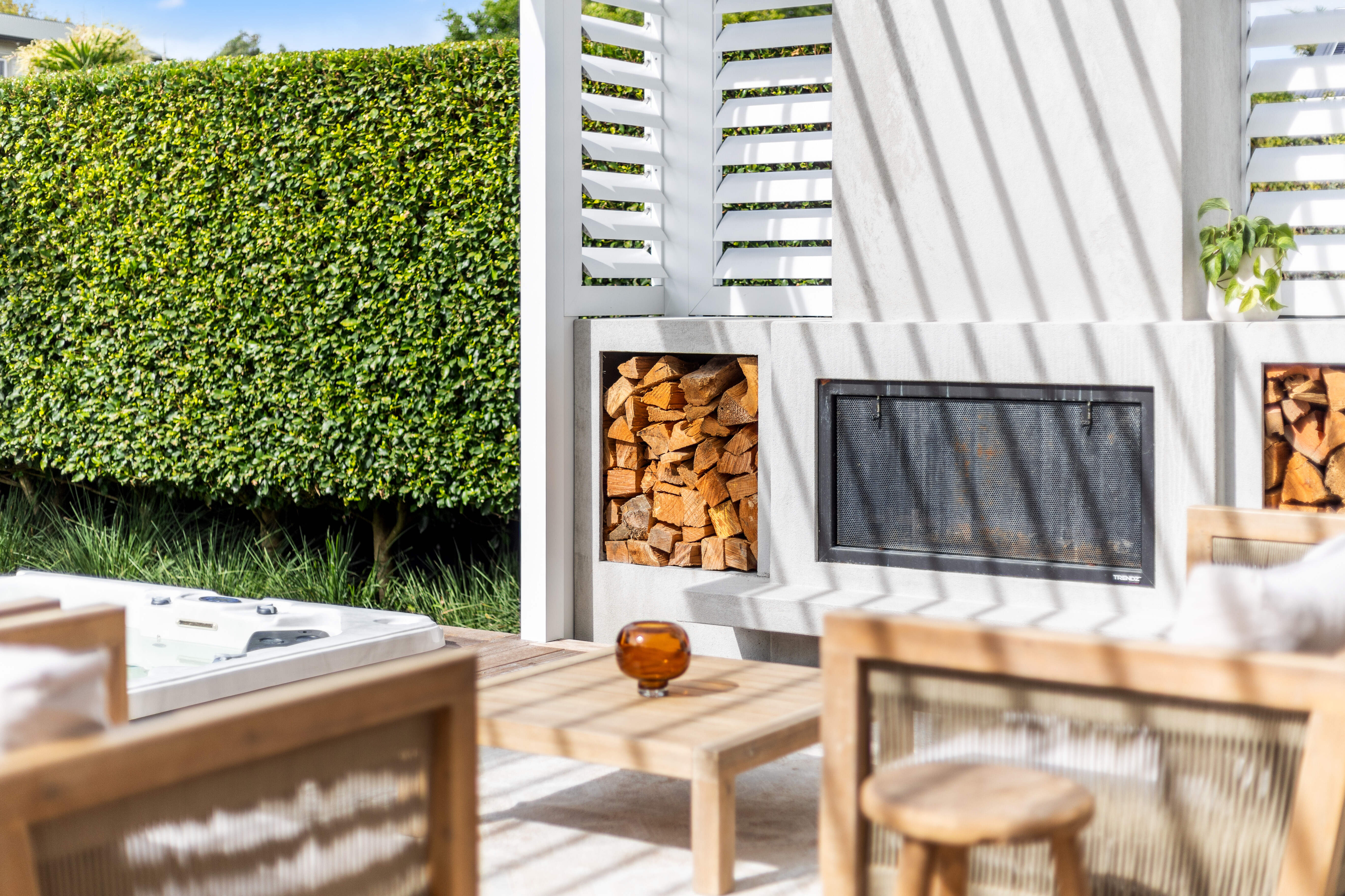 * Covered alfresco living area with adjustable louvres, a built-in spa, and an outdoor fireplace - your year-round oasis