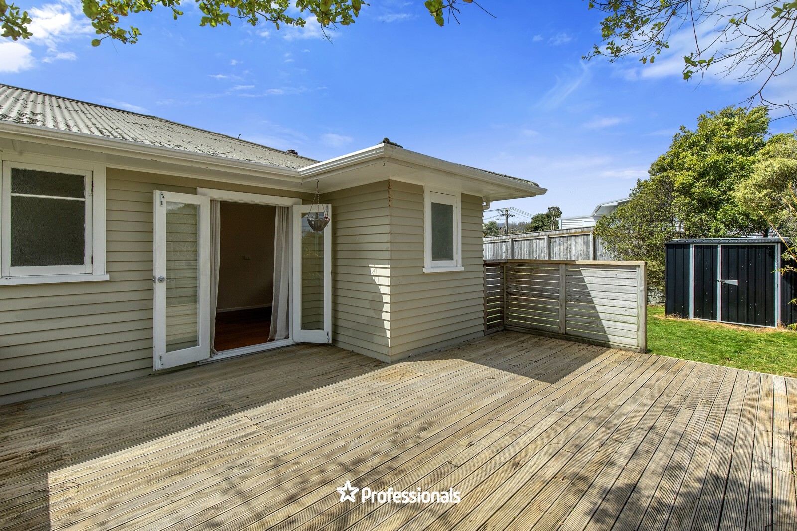 Step out through French doors to a sheltered back deck, ideal for summer entertaining, and a full-size section where kids and pets can play safely. There’s off-street parking, a quality garden shed, and scope to add further value over time.