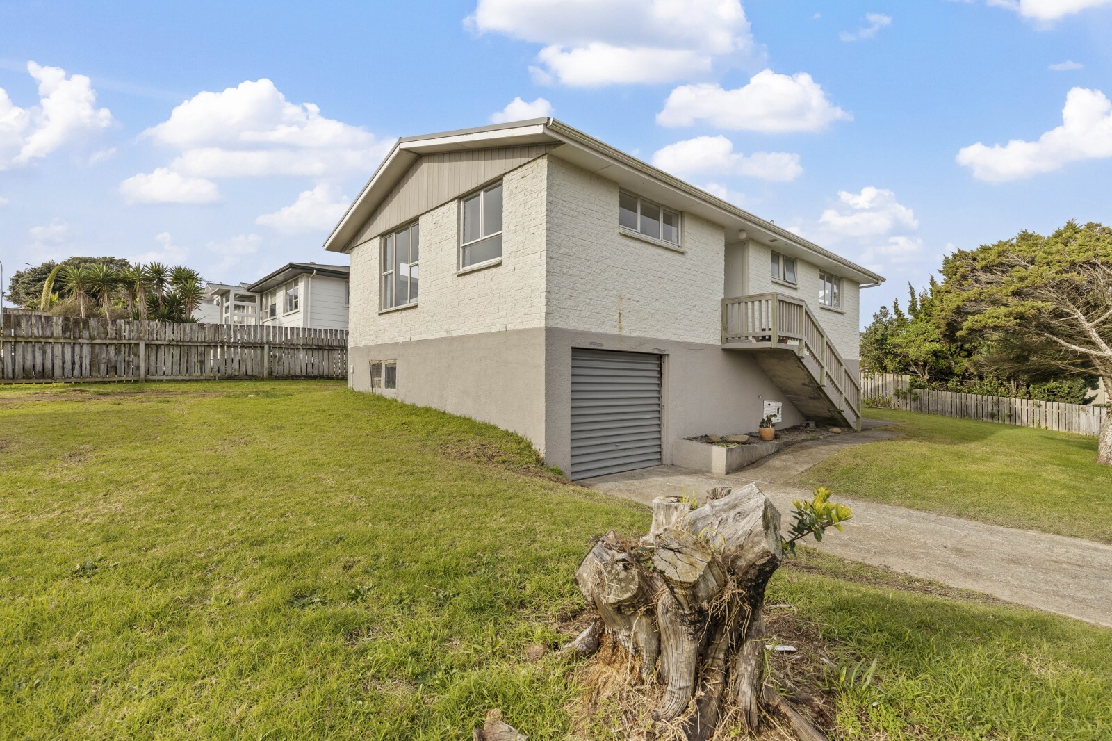 The previous vendor has the property set up with two different access points to drive onto the property, one off Rangitake Drive, the other from Marama Crescent, and the single basement garage allows a lock-up otion for parking or great on-site storage.