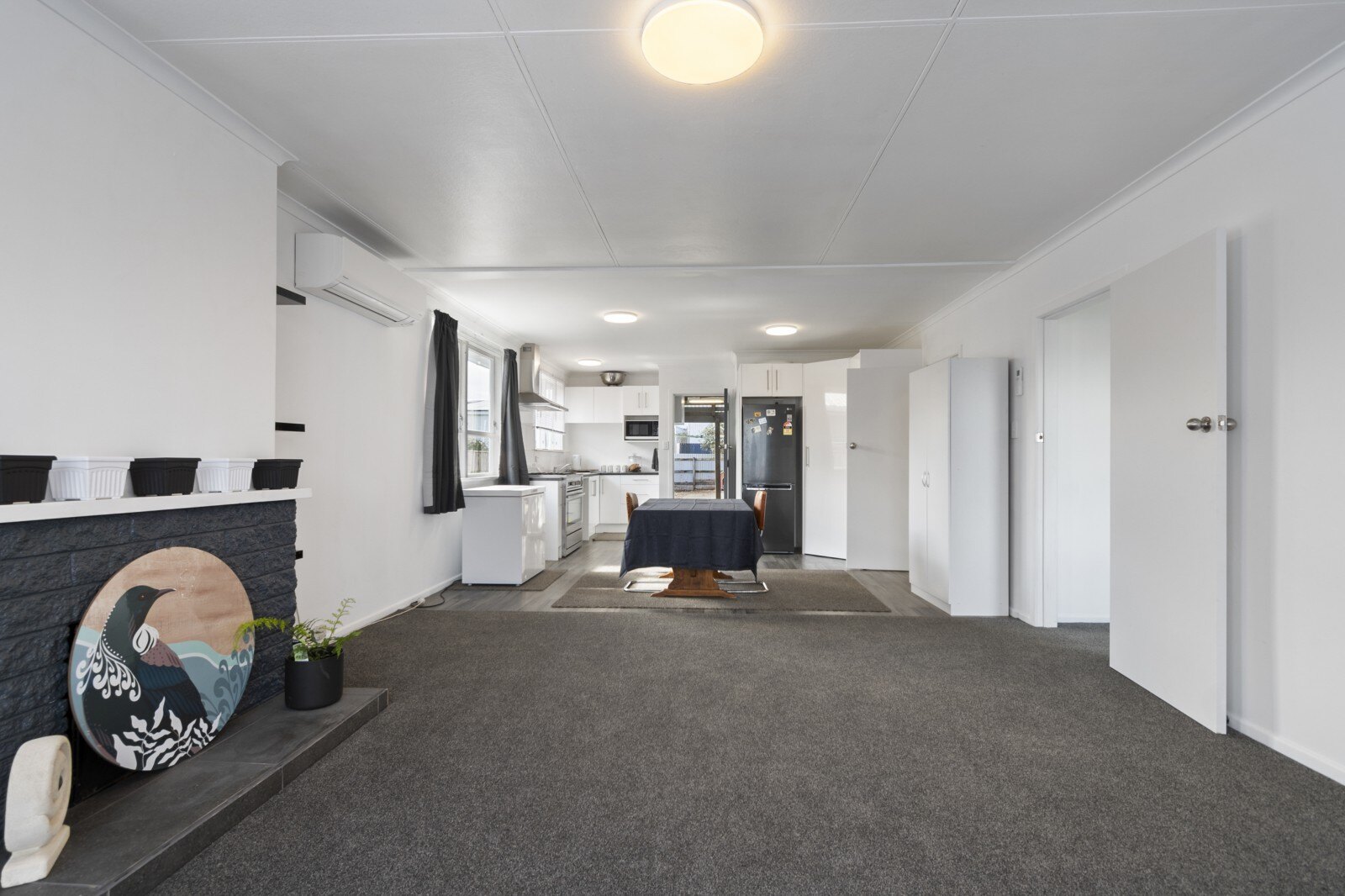 The modern kitchen is equipped with a large stove, perfect for hosting big family gatherings. With ample storage and space for a dishwasher, the kitchen seamlessly flows into the open-plan dining and lounge area, creating a warm, inviting space for family and friends. Freshly updated with new carpet, curtains, and paint, the home feels bright, cozy, and ready to move in. Step outside into the expansive backyard, complete with an undercover deck – ideal for year-round barbecuing and entertaining. The property also features a double garage with a workshop, perfect for all your tools and toys, plus a separate sleep-out offering a 5th bedroom or extra space for guests or hobbies.
